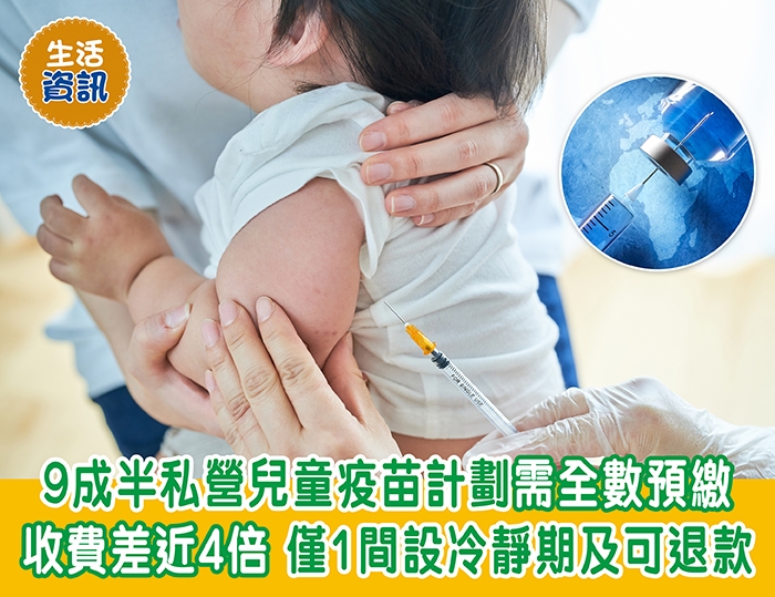 消委會測試|9成半私營兒童疫苗計劃需全數預繳 收費差近4倍 僅1間設冷靜期及可退款