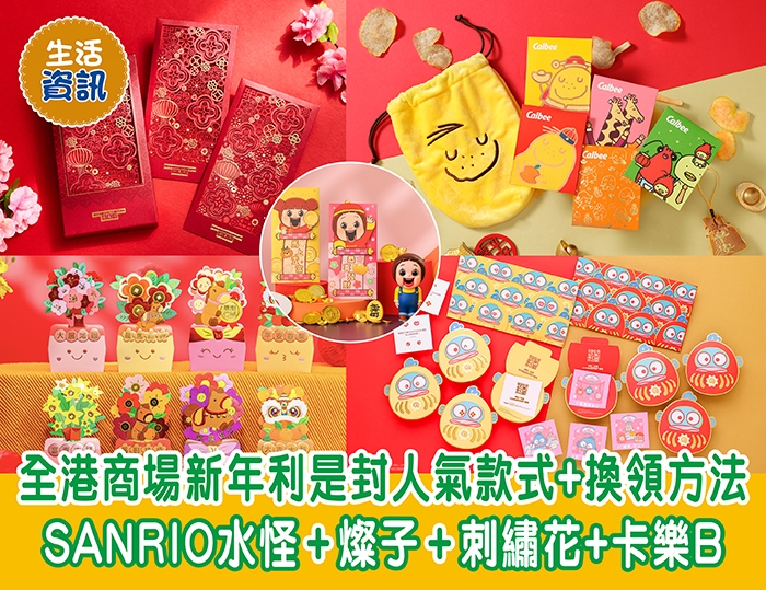 2026馬年利是封|全港商場新年利是封人氣款式+換領方法 SANRIO水怪+燦子+刺繡花 (持續更新)