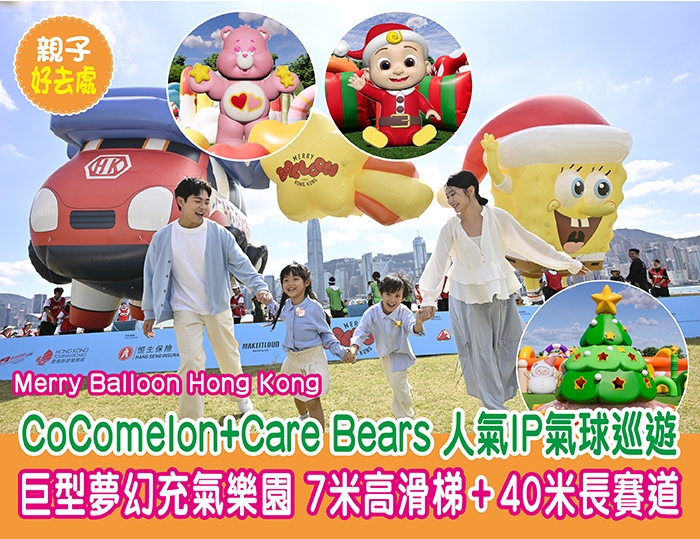 聖誕好去處2025|CoComelon+Care Bears 人氣IP氣球巡遊 巨型夢幻充氣樂園 7米高滑梯+40米長賽道