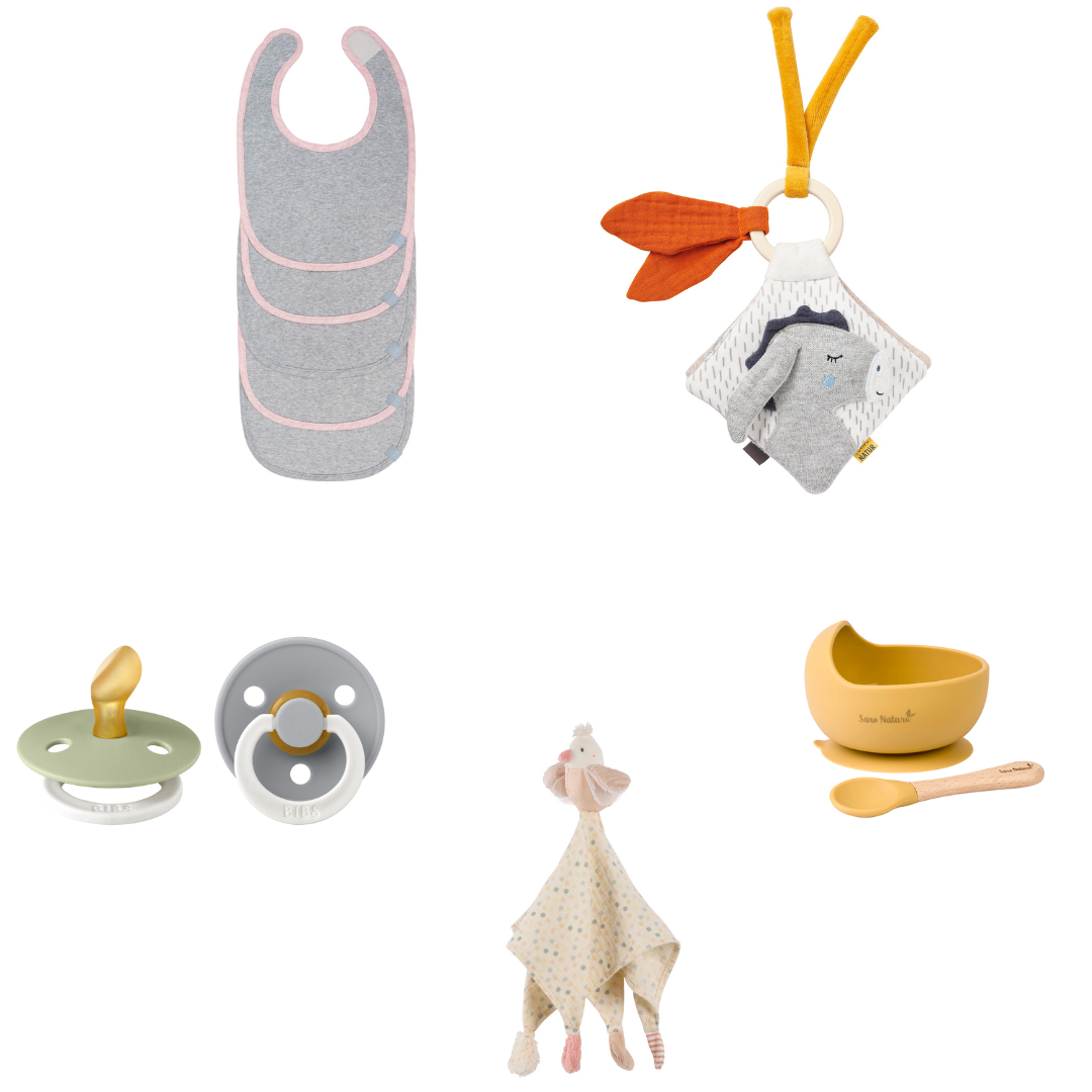 包括安撫巾、布圖案、玩咀、口水肩、食具套裝