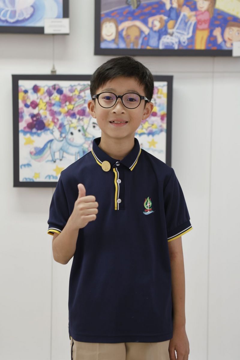 「我喜歡學校,因為老師很友善、很耐心和有趣,我也喜歡校長每天都在門口歡迎同學上學,當我們生日時,她也會給一本書作為小禮物,我在這裡讀了五年,所以我有五本書,我全部都有細閱,我今年那一本的難道剛剛好,因此我可以理解更多,我亦喜歡 Family Outing ,每年 Family Outing 讓同學和家長一起行山、踩單車、打乒乓球,還有很多東西可以玩。」