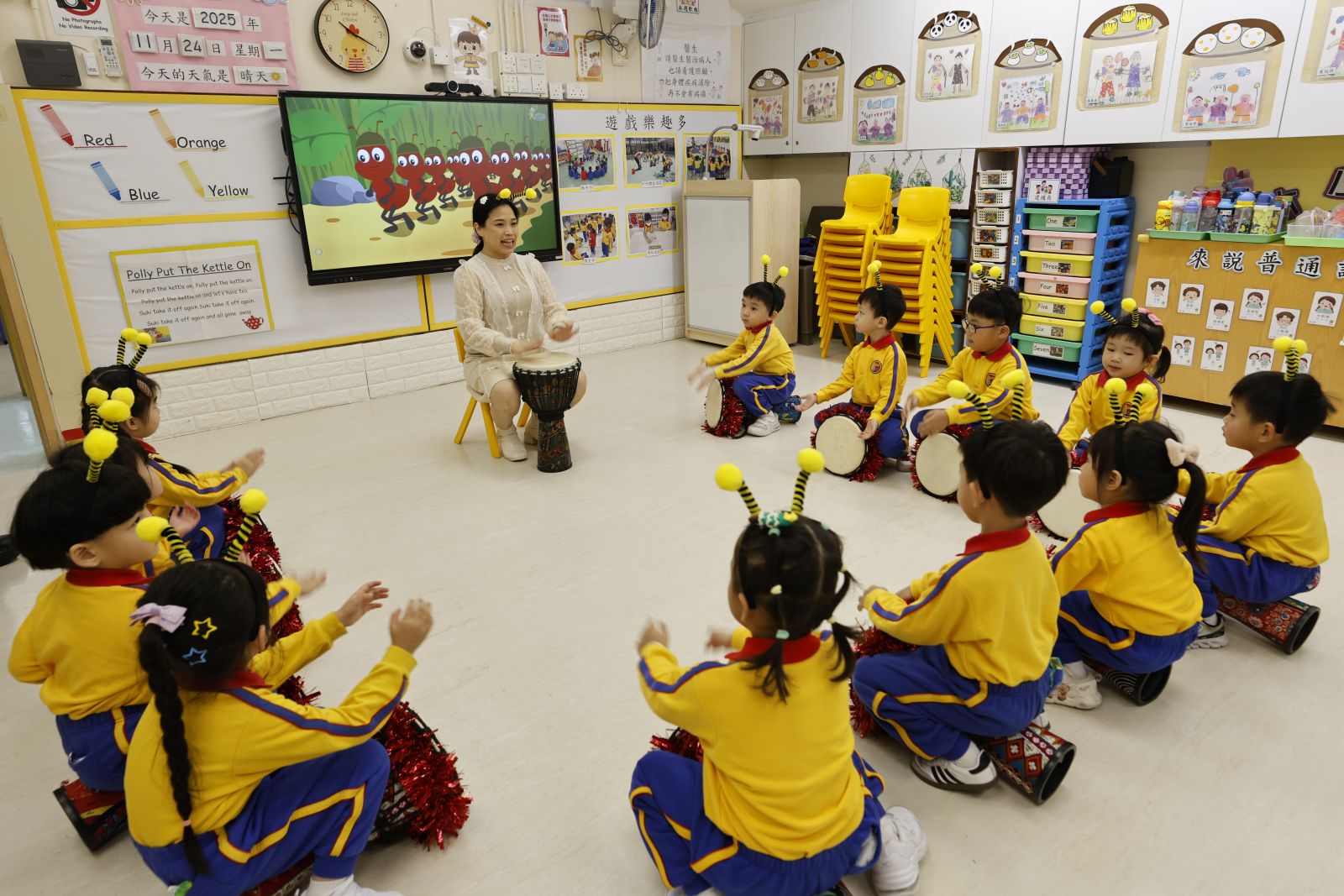 3. 於音樂活動中,以有趣的引導方式及教學內容,讓兒童投入於音樂故事中,以視覺、聽覺、觸覺和身體動態等,抒發情感和表達意念。幼、低、高班的音樂課程,分別加入韻律舞、非洲鼓及鼓樂元素,透過不同節奏訓練,培養兒童對音樂的興趣,提升審美能力。