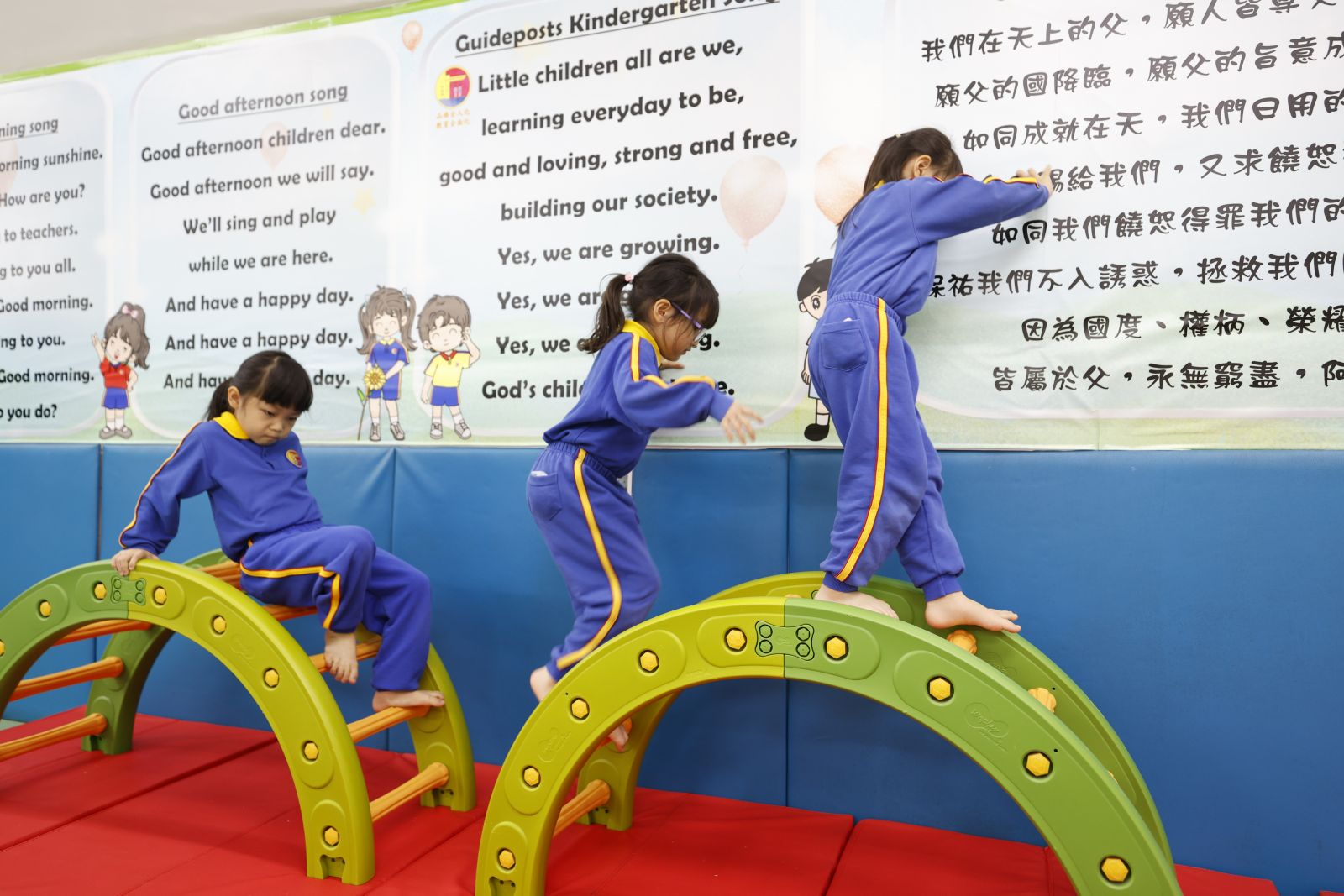 2. 學校有不同的體能設備,如攀爬架、感覺統合器材,有系統地提升兒童動作協調發展,加強身體各部分的感官刺激,從而掌握平衡力、肌耐力和反應等能力。校園更有一部精心設計的多元智能巴士,結合六育教育理念,讓兒童在安全的情況下,透過不同組件,盡情暢遊玩樂,藉此訓練兒童的自信心,培養學會積極面對、正面思考和抗逆力的態度。