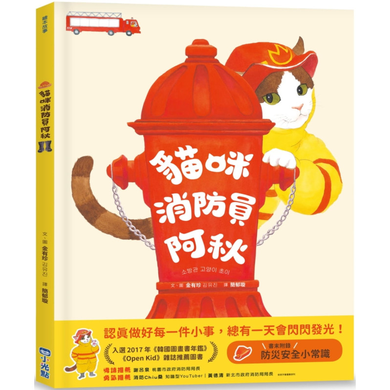 貓咪消防員面對沒有過人天分的自己,每天一如既往做著重複的事,卻滿懷一展長才的渴望,及對他人成功的羨慕。故事不僅有防災安全小常識,讓家長與小朋友們一起學習災害預防及應變,更教導孩子在羨慕別人之際,也要看到自己的長處,只要善加運用,定能為生命發光發熱。