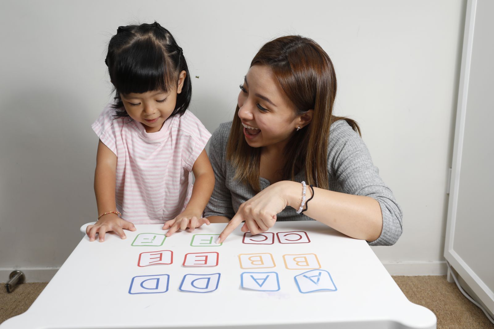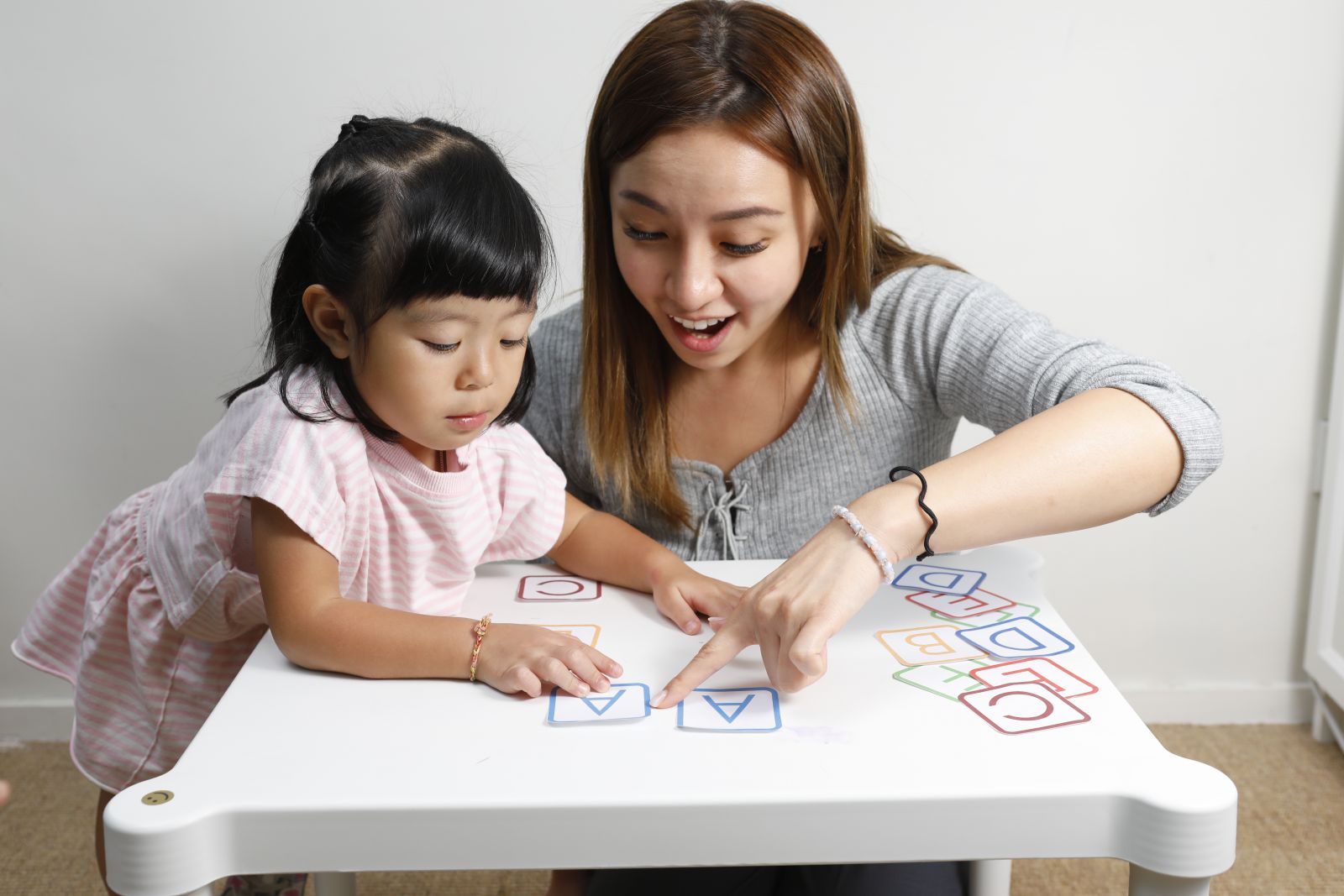 Step3:跟小朋友輪流翻出兩張字卡,如果字卡同對,就可把牌放到自己身邊,並多一次翻字卡的機會