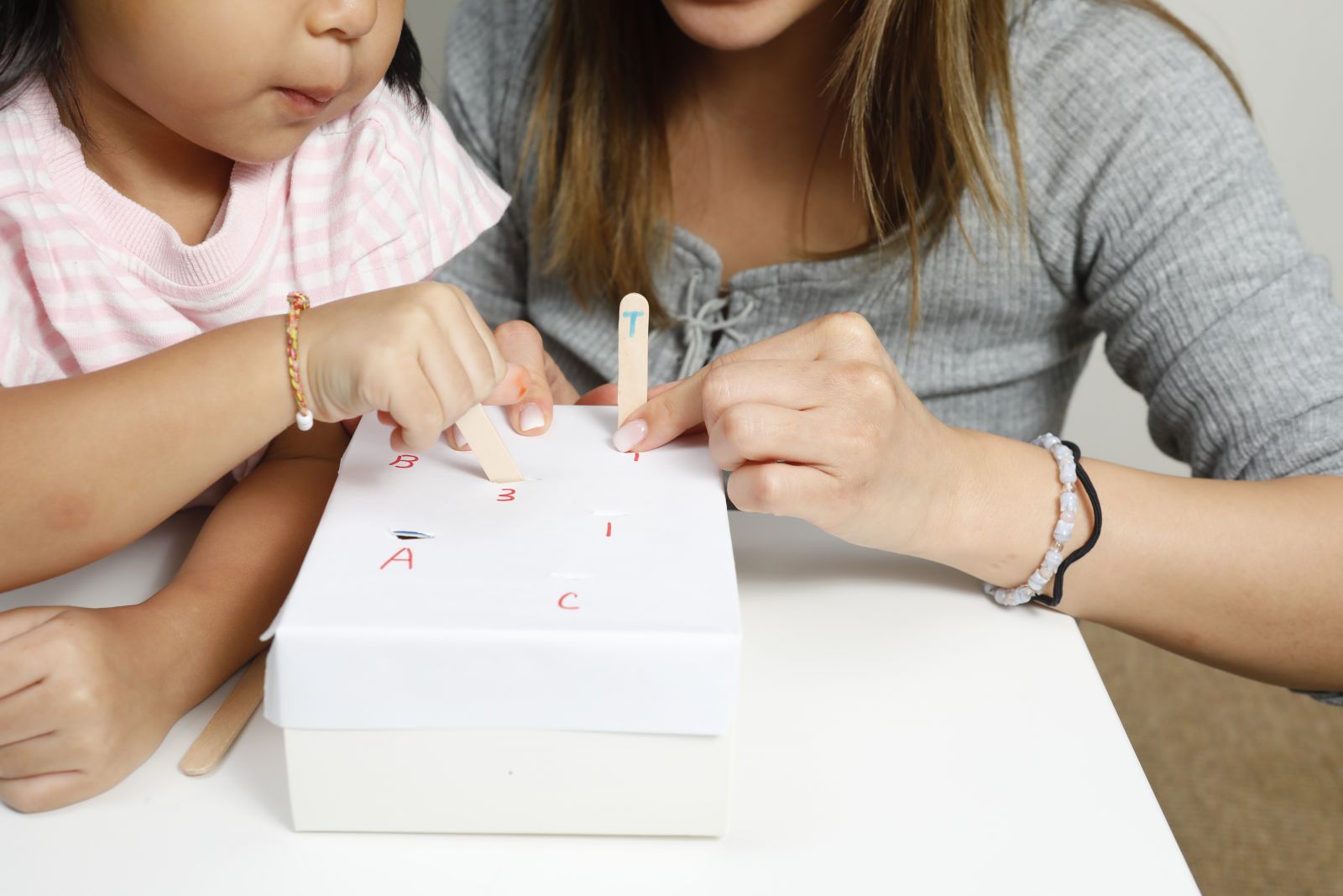 目的:要把雪條棍插進對應的洞,能同時訓練小朋友手眼協調及反應力。