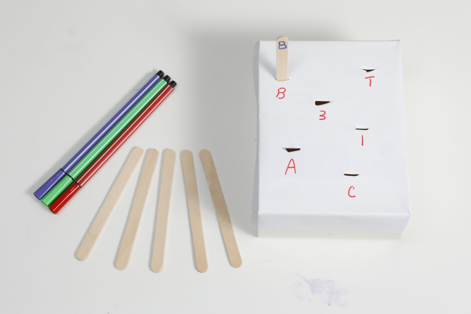 材料:顏色水筆、雪條棍、自製紙盒