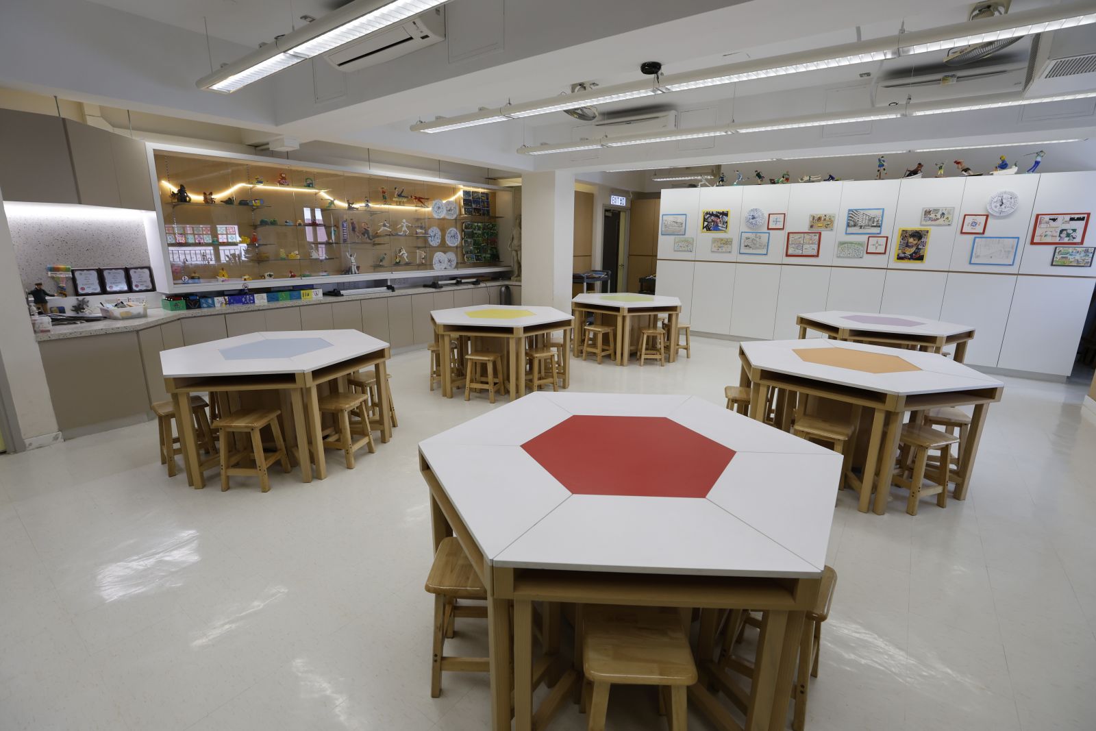 設施:禮堂、圖書館、展示廳、英文室、常識室、視藝室、視藝廊、音樂室、夢工場、Steam Lab(創意媒體科技教室)、室內恒溫游池、童軍室及家長教師會室等等