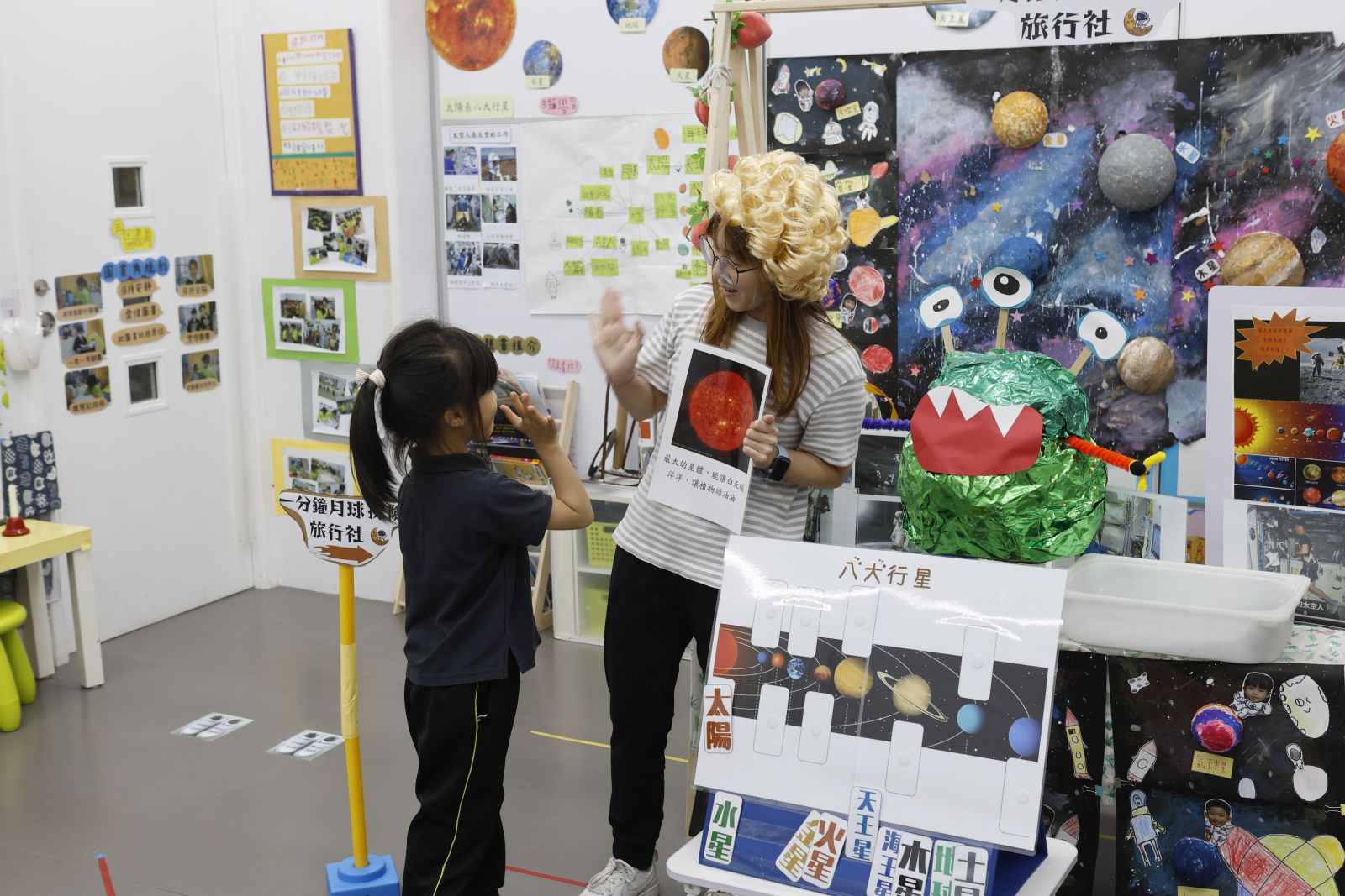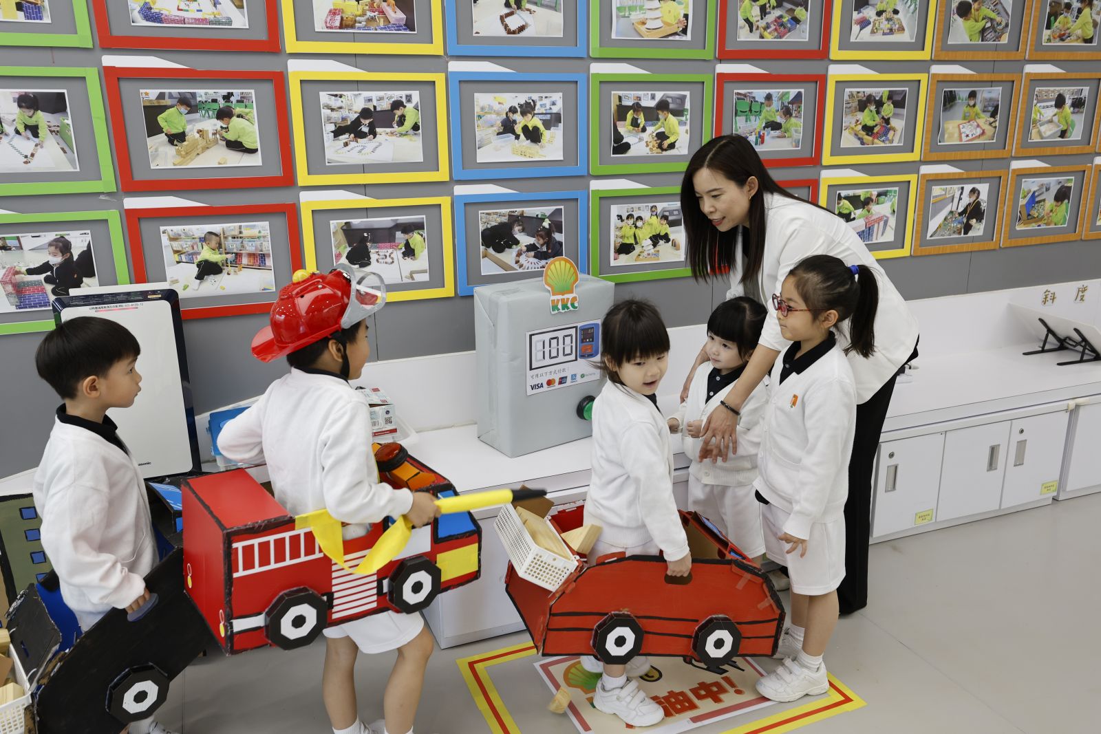 而課程就以主題學習及專題研習及繪本教學,再加入戲劇教育元素,並且會投放多點資源,在小朋友的環境、自學的部份。至於環境學習個部份,學校按主題去為每個區間做佈置,將相應的學習內容注入,從而提升學生的學習興趣,校內約有10個區域,各有不同功能,無論是角色模擬或是自由創作,都是由高、中、低班的同學一起去做,當然難度會有所分別。袁校長亦指整個過程,除了令學生有所提升外,更會學習到欣賞和觀察其他人,「希望K3的學生知道自己有能力的時候,可以去學習關心和幫助年紀較細的學生,讓他們變成大哥哥大姐姐,學懂責任感和照顧他人,希望透過這些過程讓他們多點互動。」