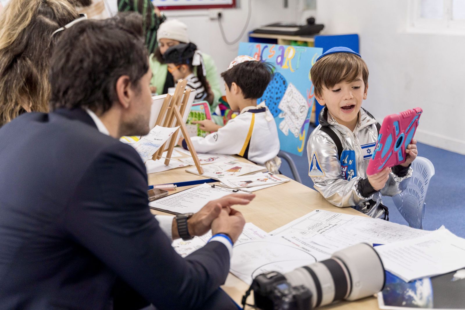 走進 Carmel 的課室,學生們不會靜靜坐在書桌前抄寫黑板,而是親手製作光明節燈台、種植植物等等,這正是學校獨特的猶太學習風格:讓學生運用所有感官,在動手中建構知識。學校深信,有意義的學習必須讓學生動起來,因此學生每個單元均設有大量探究實踐環節,例如二年級學生學習植物時,會親自栽種並記錄生長過程;四年級學生完成個人展覽,將研究成果以模型、海報或數碼作品呈現;五年級的專題研習更是深入。學校聘請的老師不僅持有相關學科的專業學位,大部分更具備國際學校教學經驗,然而,比資歷更重要的,是在傳授知識之餘,用心聆聽、觀察和關懷每一位孩子,因應他們的特質設計課堂活動。