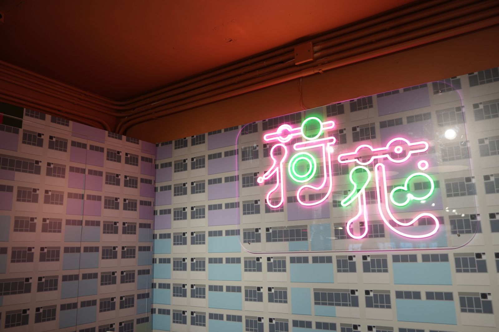 如今霓虹燈招牌已經寥寥可數,荷花1983的招牌以霓虹燈打造,盡力重現香港的特色面貌。新店開張由10月4至19日期間,店鋪設霓虹燈標語打卡道具,用手機都可以演繹至潮80年代風格,大家可以手拎「#來都來了」、「香港勁抽」、「開心Share」等標語,隨意就能拍出美照。