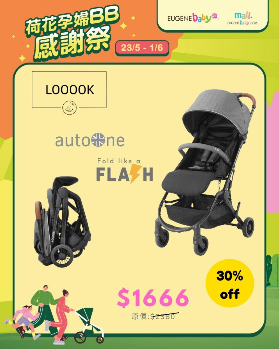 6. LOOOOK AutoOne 磁扣閃速收車舒適小巧嬰兒手推車-深灰