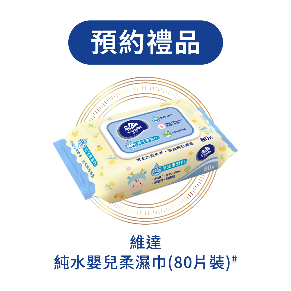 即日至7月27日前完成網上預先登記成為《美贊臣會》會員,額外送維達純水嬰兒柔濕巾(80片裝) **。