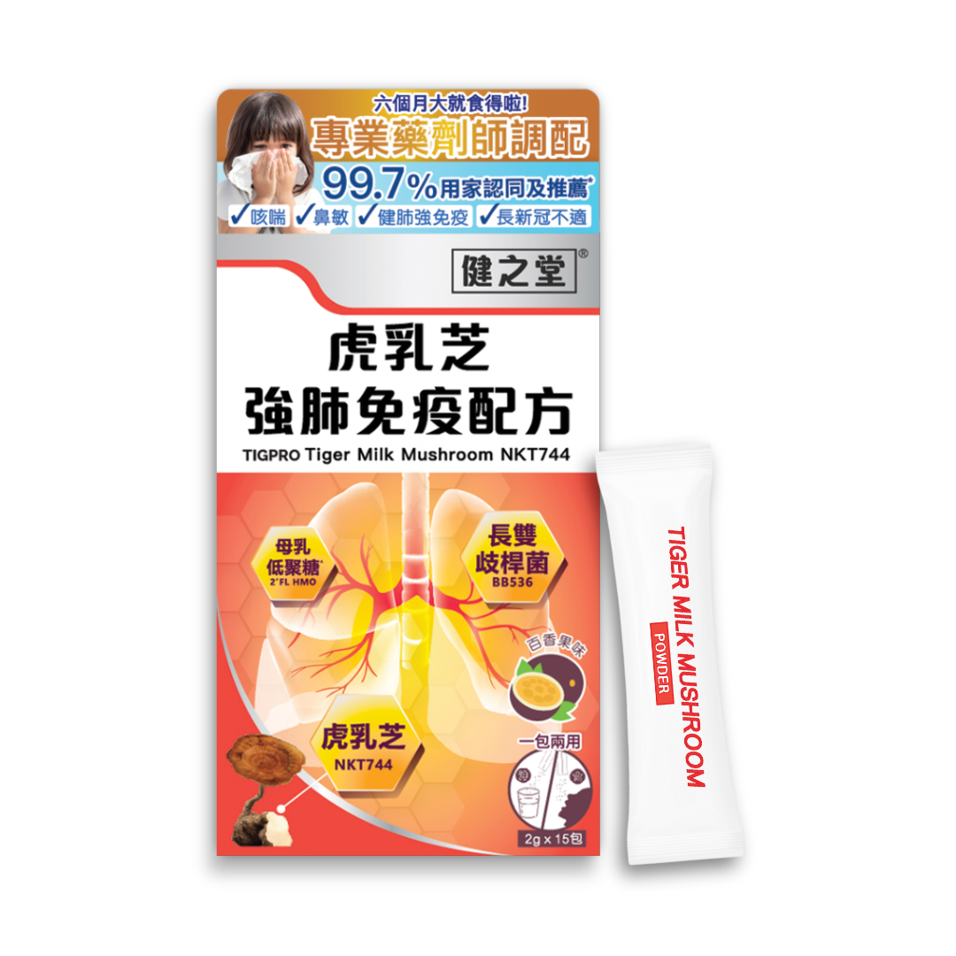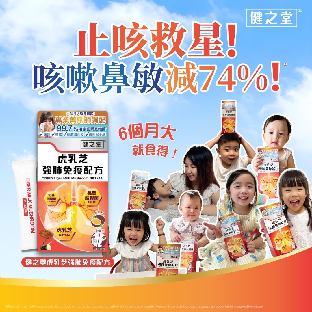 市面上有不少虎乳芝產品,很多家長以為劑量越高越好,但專業藥劑師Brian提醒,針對發育中的兒童,精準吸收比高劑量更重要。「健之堂虎乳芝強肺免疫配方」每包精準調配 300mg 黃金份量,確保小朋友呼吸道得到足夠支持。配方溫和,由 6個月大嬰兒起已可服用,乳糖不耐症或蠶豆症都適用,特別適合容易鼻敏或咳喘的小朋友。