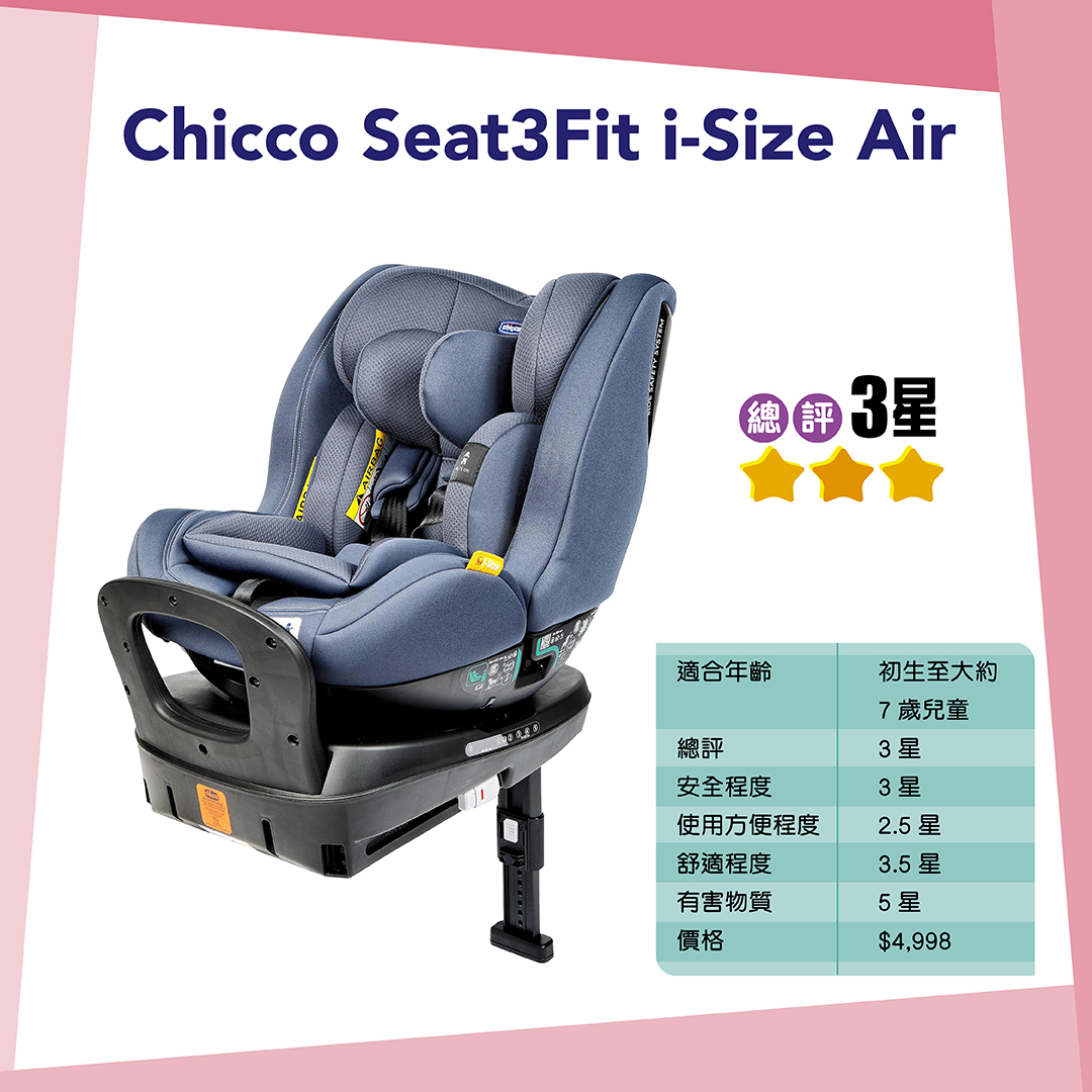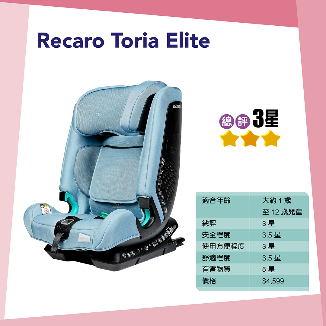 Chicco Seat3Fit i-Size Air及Recaro Toria Elite較難穩固地安裝在汽車座椅上,只得3.5點評分。
