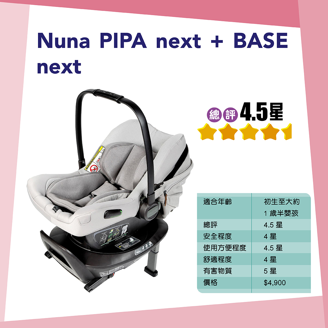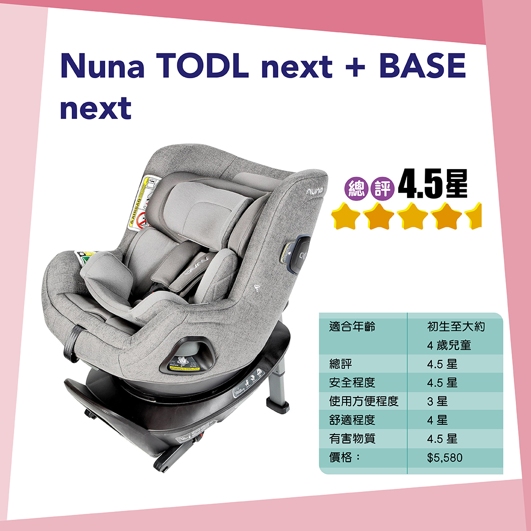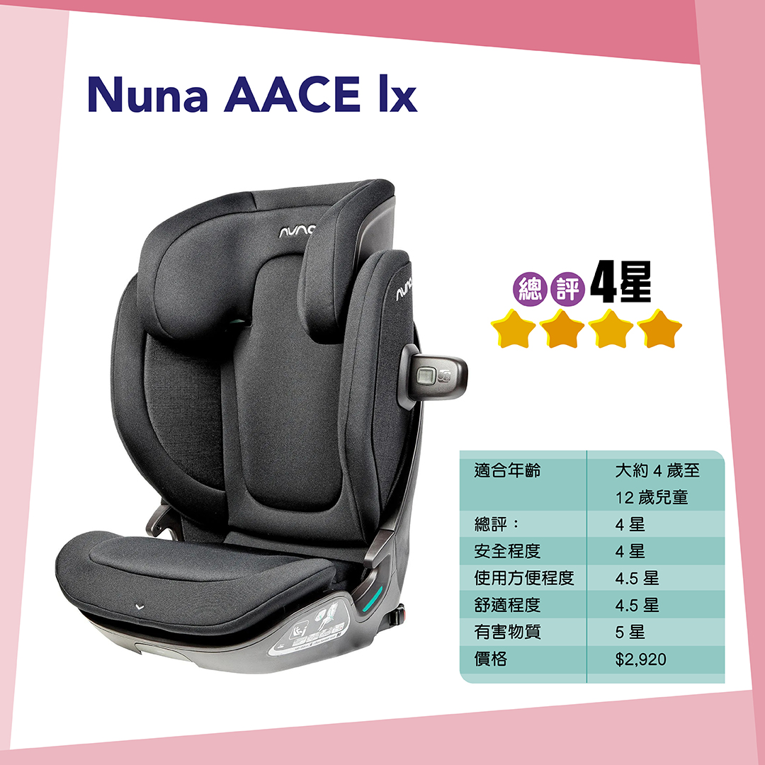 Cybex Cloud Z2 i -Size、Recaro Avan及Nuna AACE lx佔用較少車廂空間,而且可提供較寬敞的乘坐空間,獲4.5點評分。