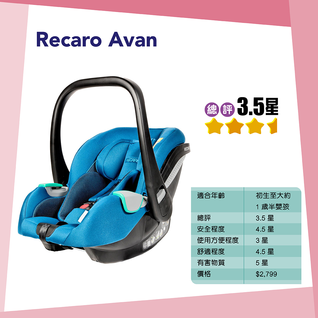 Cybex Cloud Z2 i -Size及Recaro Avan安裝時需將汽車安全帶穿過安全座椅上指定的位置,若用戶沒有留意說明書指示,安裝時可能會將汽車安全帶穿過錯誤的位置,影響安全座椅的保護能力,故僅獲2.5點評分。