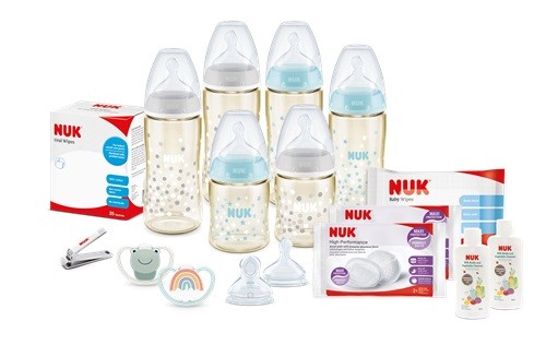 套裝包括:PCH 300mL寬口PPSU奶瓶連矽膠奶嘴(0-6個月中孔) 4個、PCH 150mL寬口PPSU奶瓶連矽膠奶嘴(0-6個月中孔) 2個、PCH矽膠奶嘴(0-6個月細孔) 2個、超透氣安撫奶嘴連盒2個裝 (0-6個月) 1盒、嬰孩口腔清潔棉 (25片裝) 1盒、濕紙巾 (10片裝) 1包、超乾爽即棄哺乳墊 (2片裝) 2包、奶瓶蔬果清洗液 60mL 2支、指甲鉗 1件