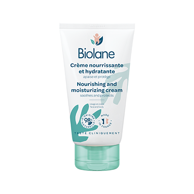 Biolane 滋潤保濕乳霜針對寶寶3大常見脆弱肌膚的不適 : 刺痛感、緊繃感、發熱感,乳木果油和甘油有助於減少肌膚刺激,促進肌膚再生,深層滋潤乾肌 (適合面及全身),持久滋養、柔軟、舒適,強化天然皮脂膜屏障功能,減少水份流失,舒緩痕癢不適, 法國製造。