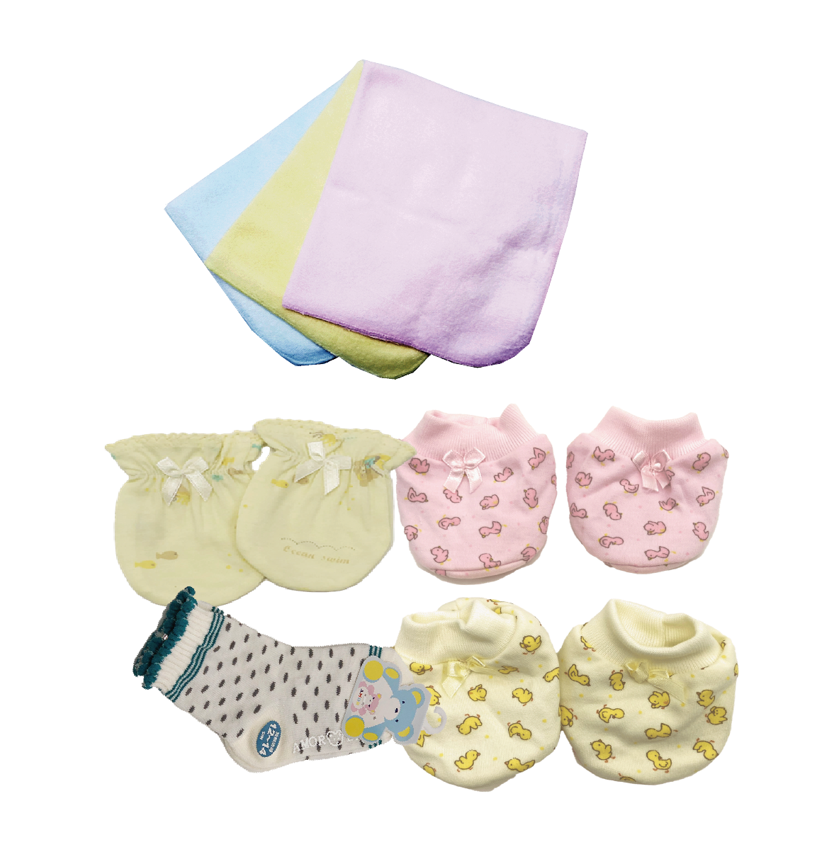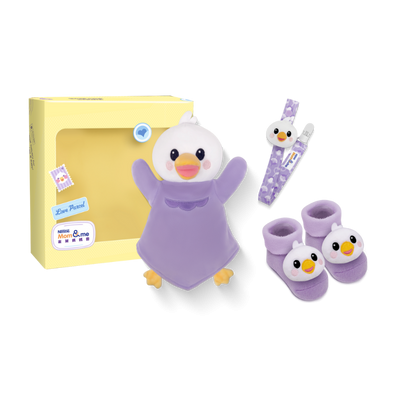 1. 獨家角色嬰幼兒禮品套裝,包括手偶安撫巾、萬用夾及棉質襪子。