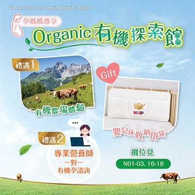 另外,孕媽於Organic有機探索館可體驗專業營養師一對一有機孕諮詢,完成後可獲得嬰兒床收納掛袋,數量有限,先到先得!