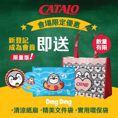 於會場新登記成為CATALO 會員即送CATALO 精美丁丁福袋一個及可玩夾公仔機一次。