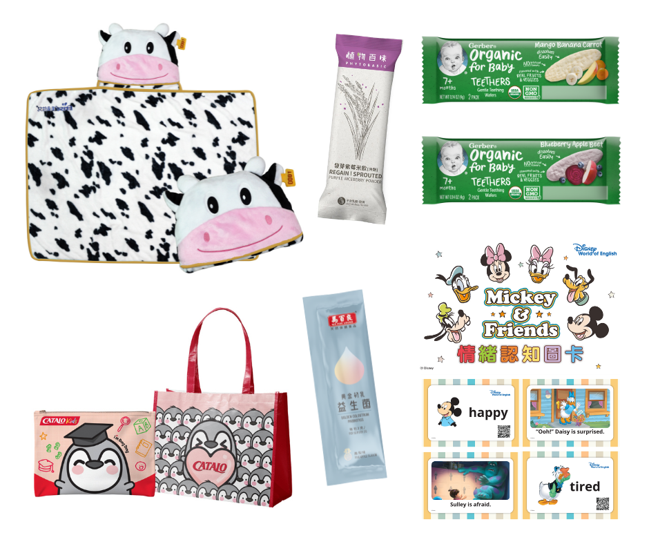 憑優惠券到展位體驗學習教材,即送嬰幼兒成長福袋(價值$380)包括: