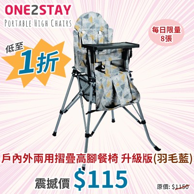 荷花BB展超高CP值推介5|One2Stay戶內外兩用摺疊高腳餐椅升級版 羽毛藍色