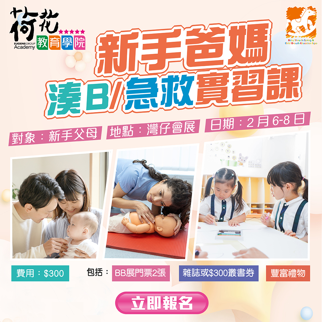 新手爸媽對於照顧小朋友有不同疑難,荷花教育學院邀請專家助大家全方位提升育兒技能。課程囊括新手爸媽湊B實習課、嬰兒急救實習班、BLW餵食及哽塞急救實習課、幼兒常見疾病及意外護理實習班及PNK1入學攻略等。