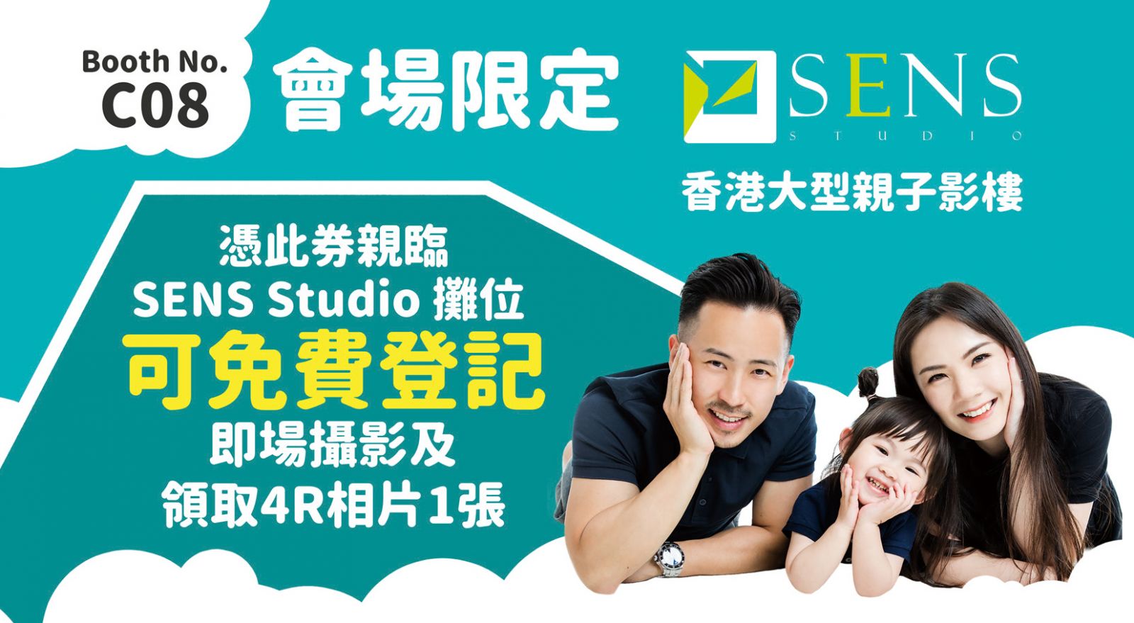 憑優惠券可免費登記即場攝影及領取4R相片1張。