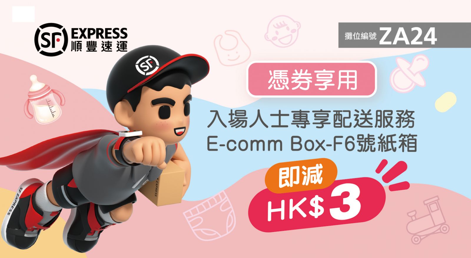 憑著優惠券可享荷花BB展入場人士配送服務優惠,使用E-comm Box–F6號紙箱即減HK$3,數量有限,換完即止。