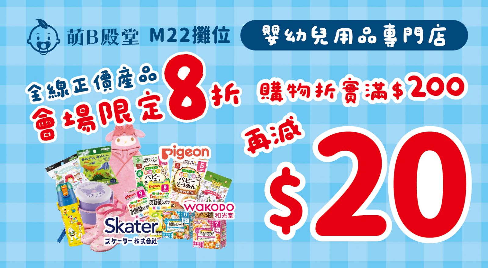 憑券購物折滿$200即減$20。