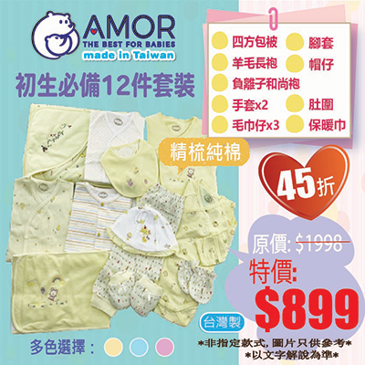 3. AMOR精梳棉台灣製-初生必備12件套裝