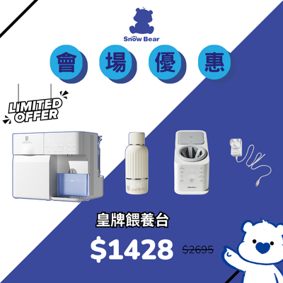 SnowBear皇牌餵養台包含了5合1暖奶搖奶消毒機、日月潭沖浪沖飲機和UV消毒烘乾機和智能恒溫杯,能輕鬆應對奶瓶加熱、搖勻和消毒,確保寶寶每一口奶的溫度和衛生。此外,智能恒溫杯隨時隨地享受理想的溫度,無需擔心飲品過冷或過熱。日月潭沖浪沖飲機結合了UV消毒烘乾技術,不僅能迅速沖各種飲品,還能在使用後自動消毒,確保每一奶瓶都安全衛生。