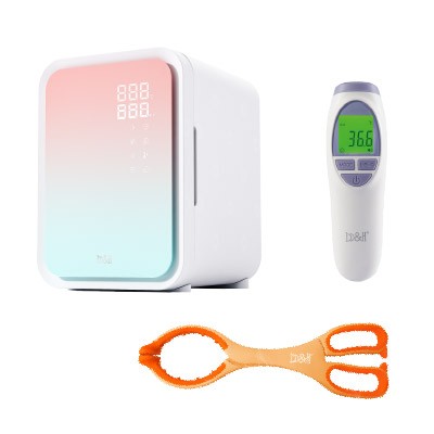 包括:HELIOS UV LED消毒烘乾機*1、天然奶瓶蔬果清潔液 500ml *1、非接觸紅外線體溫計*1、奶瓶夾子*1。