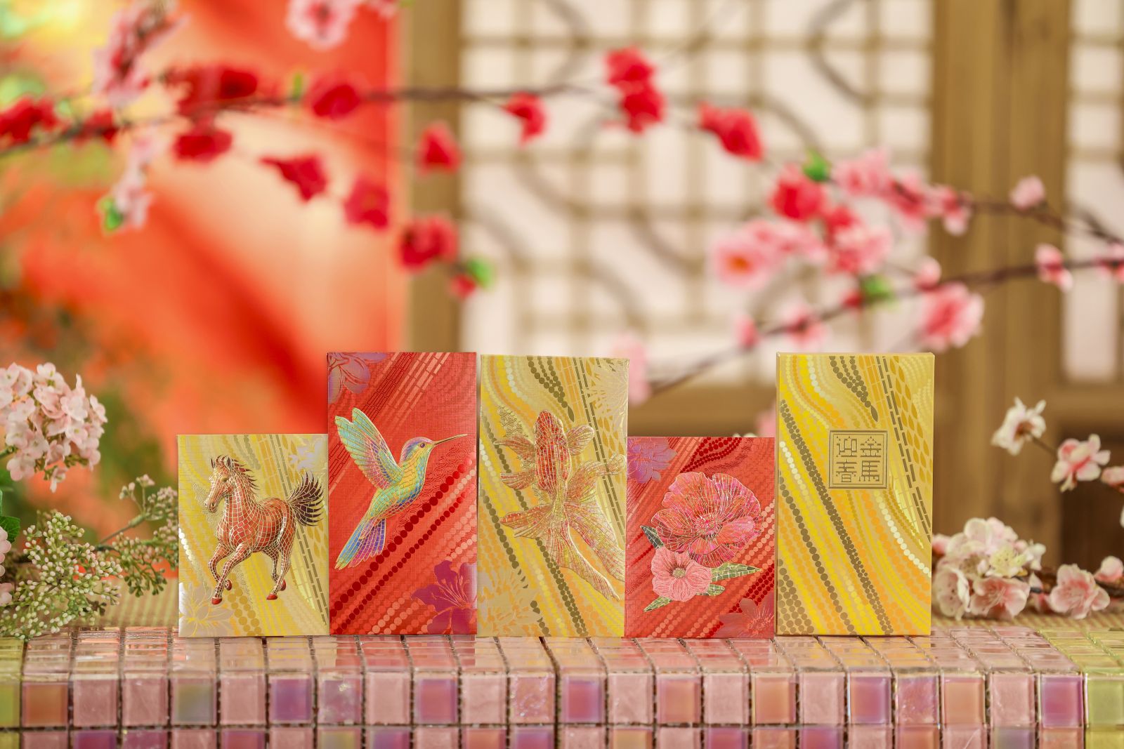 丙午馬年將至,新鴻基地產旗下將軍澳東港城、屯門卓爾廣場及葵興life@KCC攜手誠意推出「千格玲瓏」限量版精緻利是封,以匠心工藝迎春接福。利是封設計靈感源自古典馬賽克鑲嵌藝術,透過千格色塊細緻拼貼,創作出4款祥瑞圖案,包括象徵年年有餘的錦鯉、寄予愛與希望的蜂鳥、寓意富貴騰達的駿馬,以及象徵富貴吉祥的牡丹。
