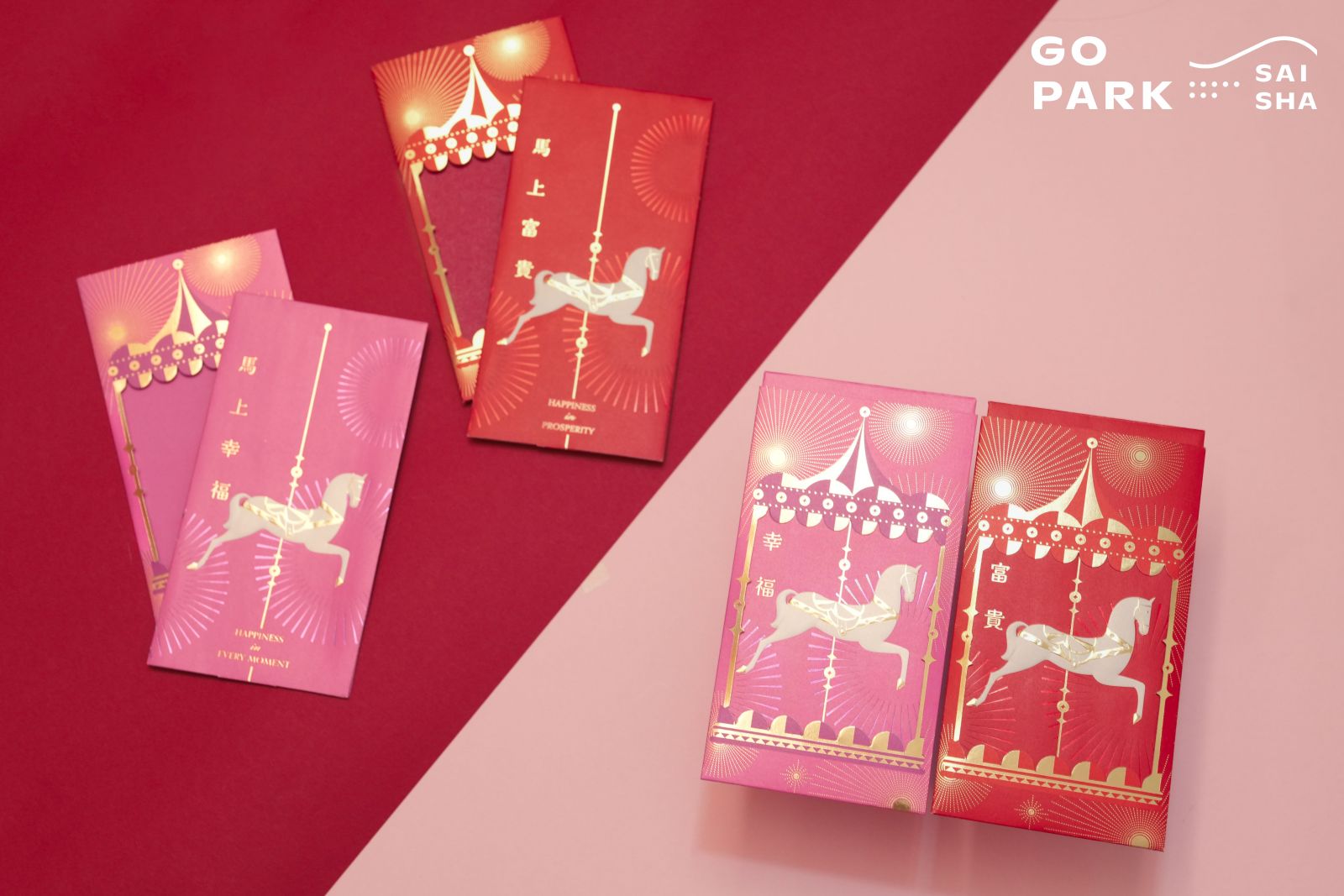 丙午年馬年將至,西沙GO PARK以「炫夢旋轉木馬」為主題,精心推出「躍馬GO迎新春利是封套裝」,獻上最純粹、最摯誠的馬年祝願,寓意新一年好運連連、豐足富饒。封套設計巧妙融合傳統吉祥元素與精緻工藝,主調選用艷亮粉色和典雅紅色,象徵新一年福氣沖天、紅運當頭。
