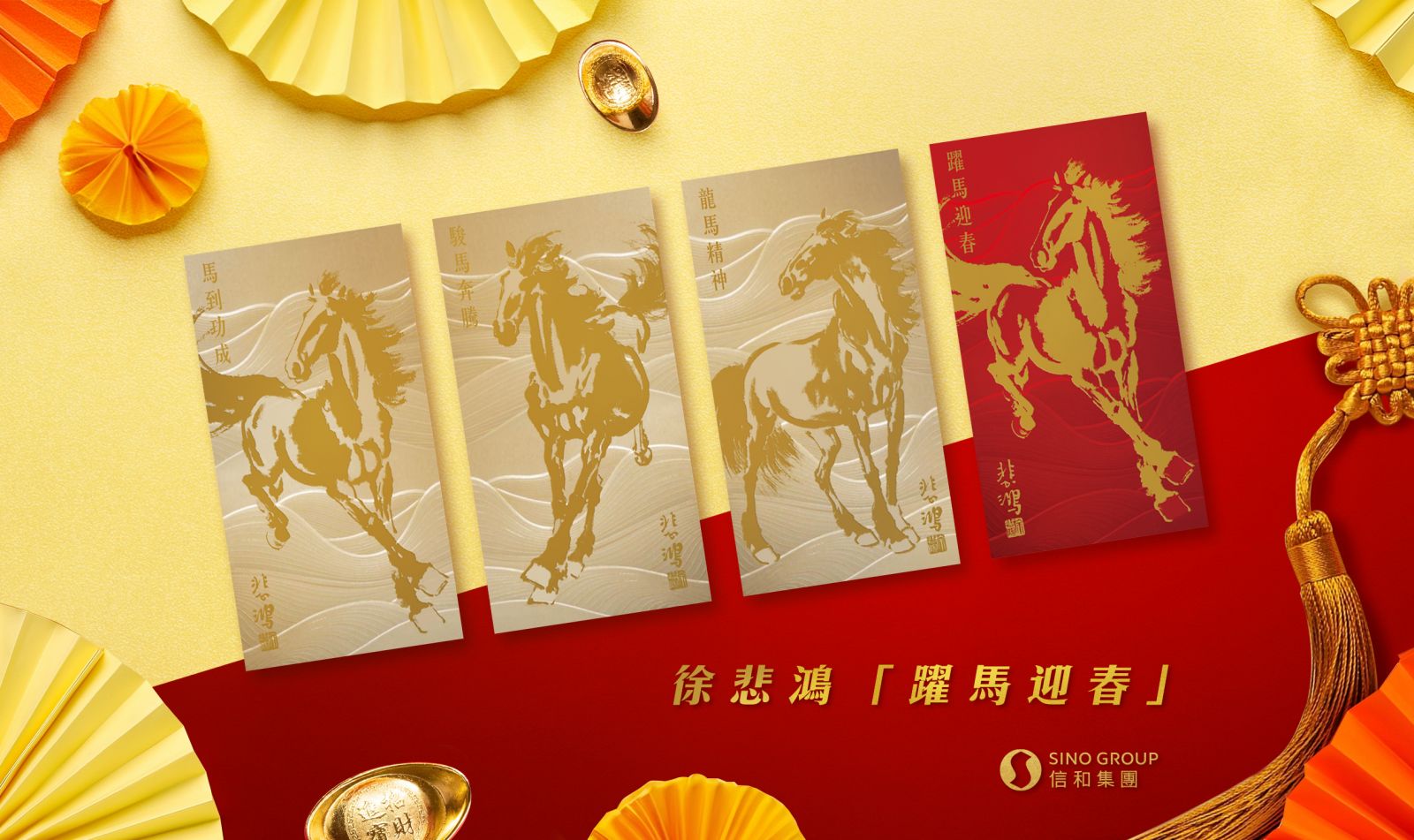 信和集團與徐悲鴻藝術委員會再度攜手合作,於奧海城、屯門市廣場及藍灣廣場隆重推出徐悲鴻「躍馬迎春」系列利是封,將國寶級水墨大師徐悲鴻筆下著作駿馬融入新春祝福,精選徐悲鴻其中國寶級駿馬畫作《奔馬圖》及《立馬圖》,將傳統水墨畫筆觸配上現代先進的3D浮雕打印技術並加上細膩華麗的燙金效果,於利是封上呈現躍然的駿馬神韻,盡顯氣勢磅礡,寓意「馬到功成」,為傳統利是封增添藝術收藏意義。
