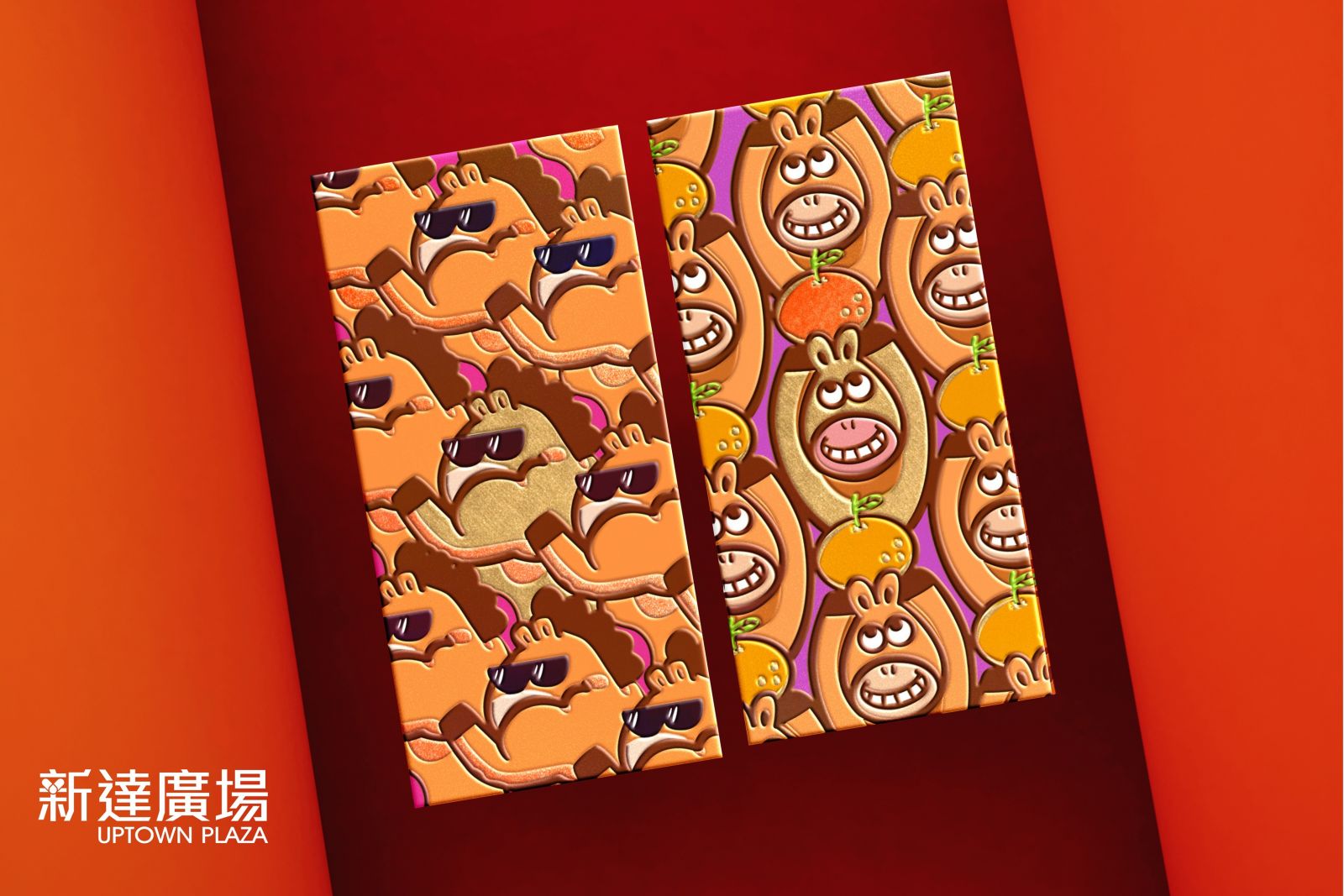 大埔新達廣場誠意推出限量「馬年吉祥」利是封套裝(共2款設計,一套2款、共8個),由自來自香港的視覺設計師與藝術家阿吉與小万來設計,兩款設計都以幽默搞笑的風格表現賀詞,以燙金凸印工藝細緻呈現圓滾滾、充滿活力的小福馬,希望將力量與祝福,放進每個紅包裡。