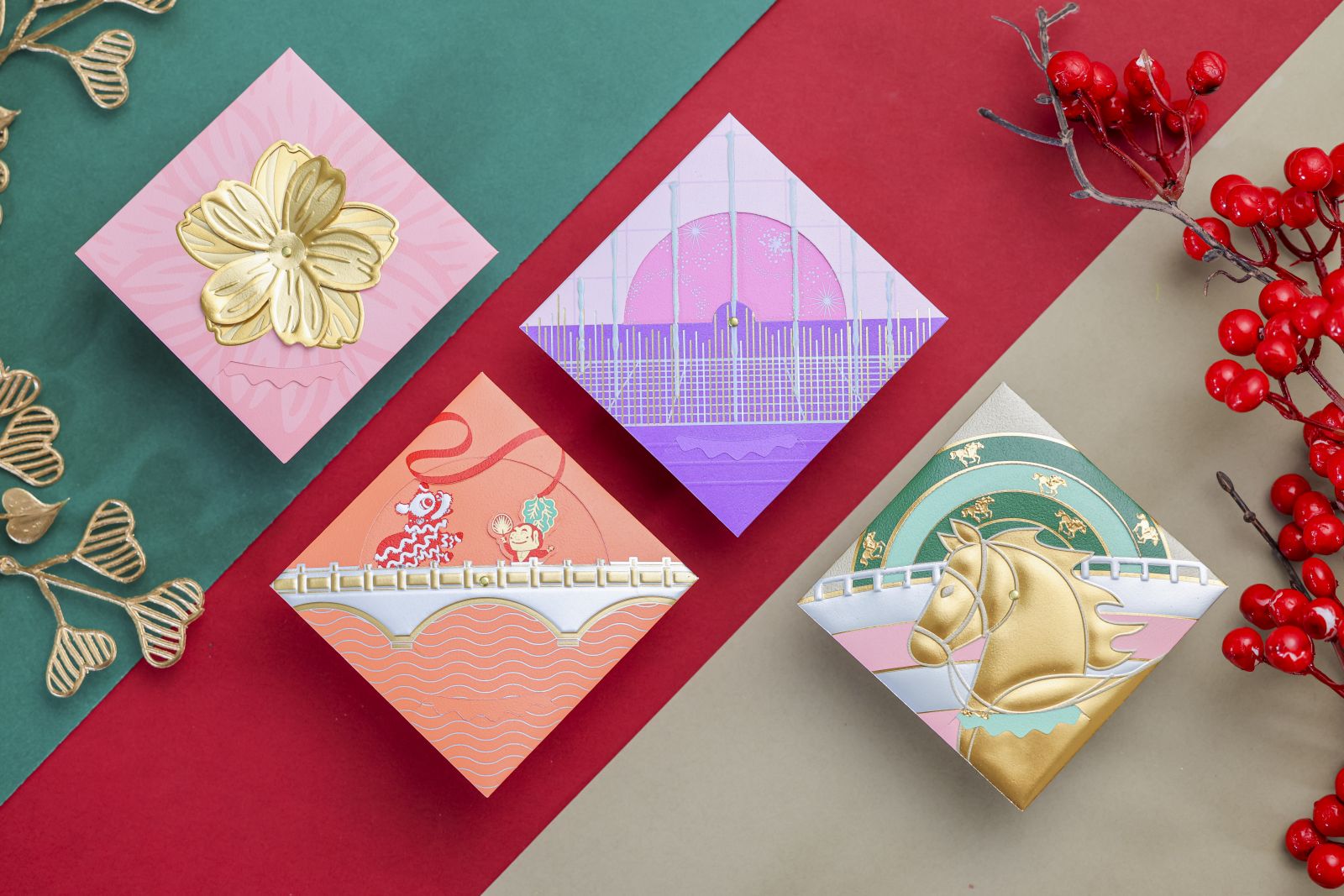始創中心今個馬年匠心呈獻「駿影璀璨 馬躍花開」摩爾紋利是封,特別以華麗格調的旋轉木馬為主題,推出一套兩款—「甜美花盛」及「光影時尚」系列的利是封,創新配上摩爾紋技術,透過線條間距與角度的精準設計,抽拉之間將靜態的利是封轉化為一幅幅靈動的畫卷,將童趣與奢華巧妙揉合,為新春祝福添上雍容華貴的氣息,延續好運喜悅。
