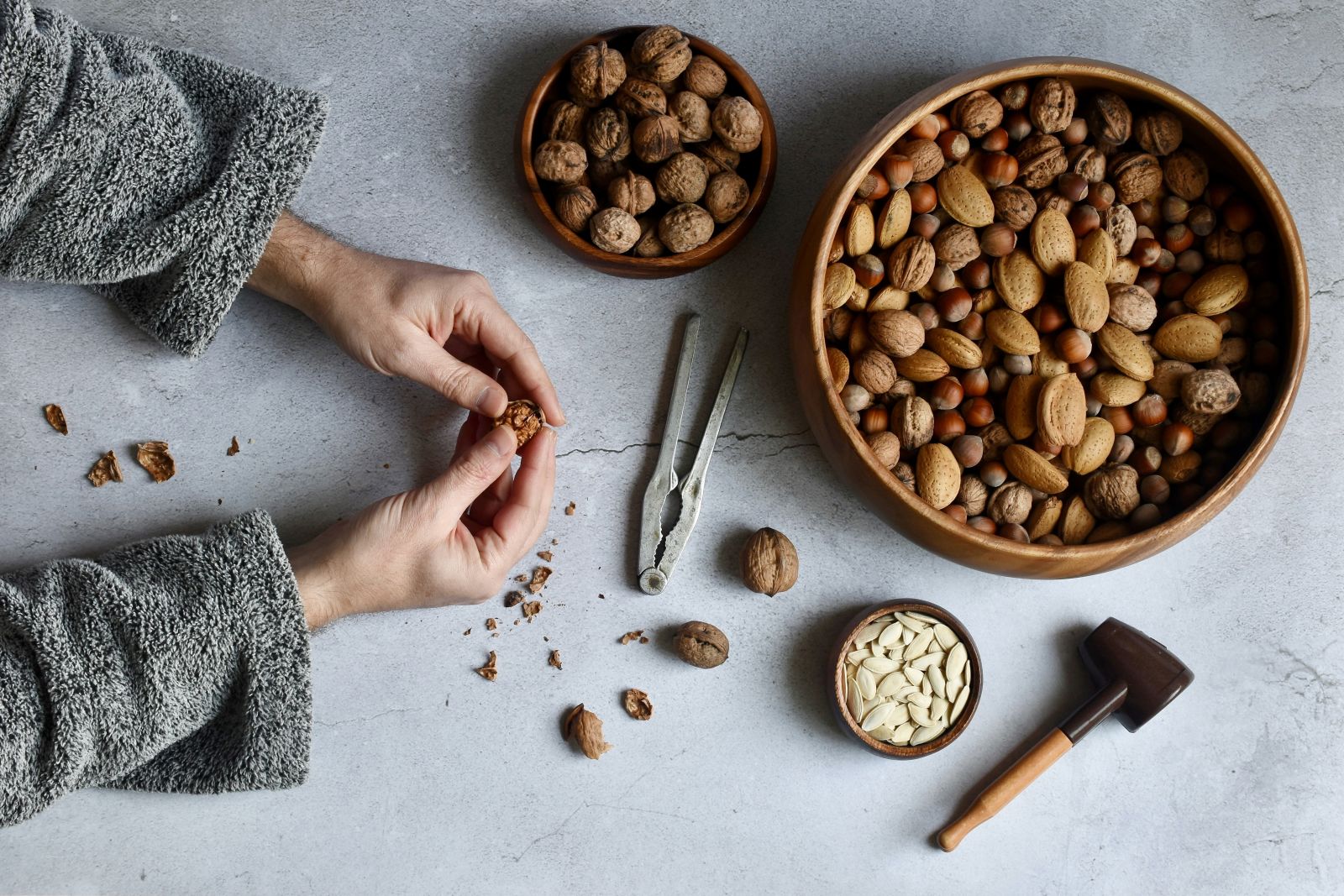 果仁亦是良好植物蛋白質的來源,蛋白質是腦細胞構成的主要元素之一,所以攝取足夠蛋白質,有助胎兒腦部發展;至於對於孕婦來說,蛋白質不單可以維持子宮、胎盤、乳腺組織的運作,更有助增加孕婦的抵抗力,加強胎兒的先天免疫能力,降低患病機會,以及減少孕吐所帶來的不適。另外,果仁中的抗氧化物對孕婦和胎兒有多重益處。抗氧化物能中和自由基,減少細胞損傷,從而保護胎兒的發育,而且有助增強孕婦的免疫力,降低發炎風險。例如,核桃中的奧米加-3脂肪酸和抗氧化物能促進胎兒大腦發育,並保護心血管健康。