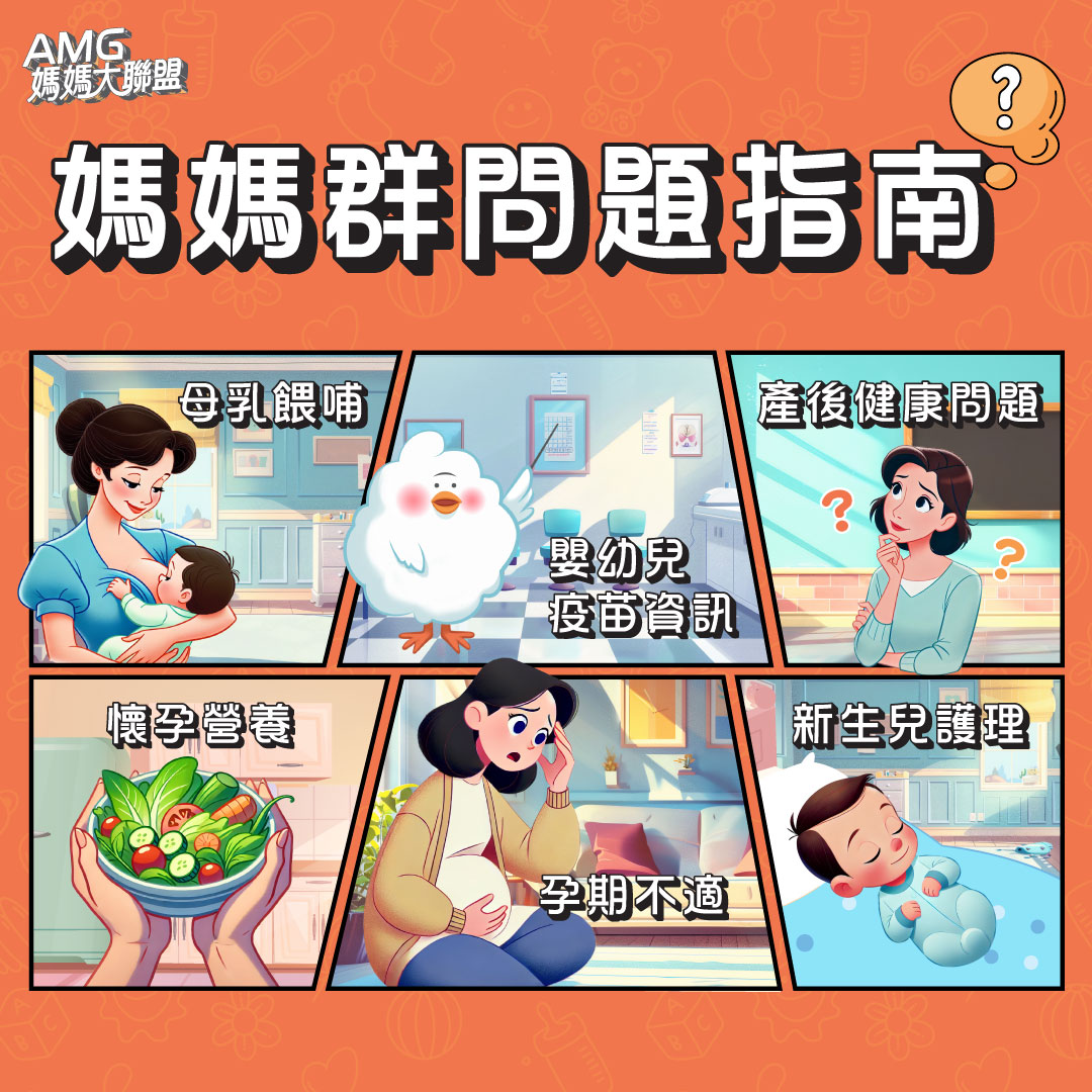 無論是新手媽媽還是懷孕媽媽,都歡迎加入「AMG媽媽大聯盟」的媽媽WhatsApp Group,不僅能獲得專業的醫護諮詢,還能與多位媽媽們分享經驗、互相支持,為BB的健康成長保駕護航。