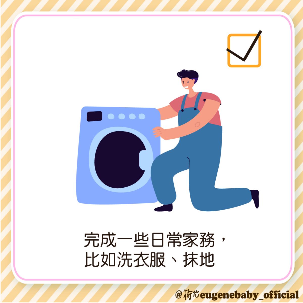 很多家務看似簡單,其實積累起來起來很辛苦,比如掃地拖地、洗衣服、買菜做飯,等等。假如可以令媽媽們不需操心這些家庭瑣事,可以幫助她們更快從懷孕分娩帶來的身體損耗中恢復。
