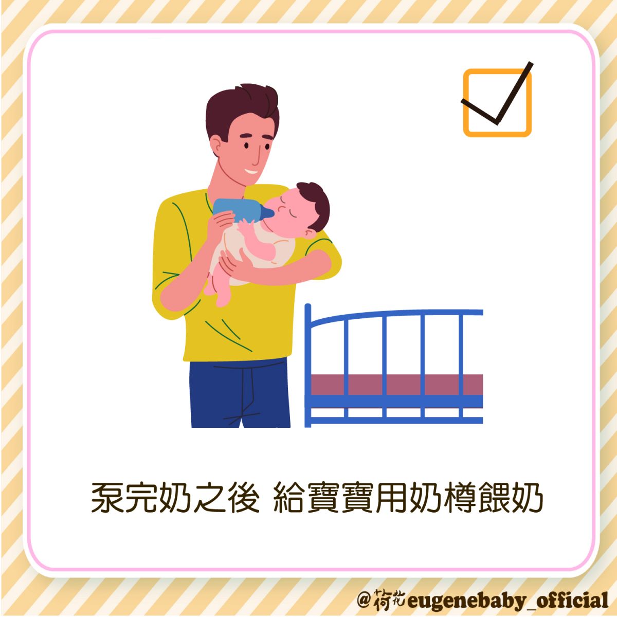 一些職場媽媽需要在公司泵完奶之後帶回家餵哺寶寶,或者有時媽媽需要休息較長時間也會先泵奶儲存奶水。如果爸爸可以承擔將泵出的奶水餵給寶寶的責任,那麼媽媽可以多出許多休息的時間,也不用半夜時時起床餵奶。