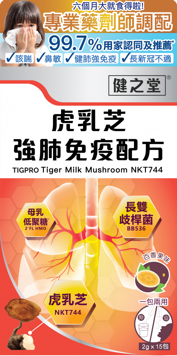 虎乳芝是一種天然草本菌類,現代研究指出其含有多種多醣體及活性成分,能有效提升呼吸道免疫力,減少咳嗽發作,且副作用極低,6個月大的小朋友已經食得,適合長期保健。