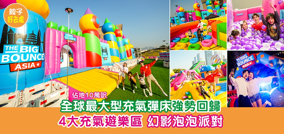 親子好去處|全球最大型充氣彈床The Big Bounce強勢回歸 佔地10萬呎 4大充氣遊樂區 幻影泡泡派對