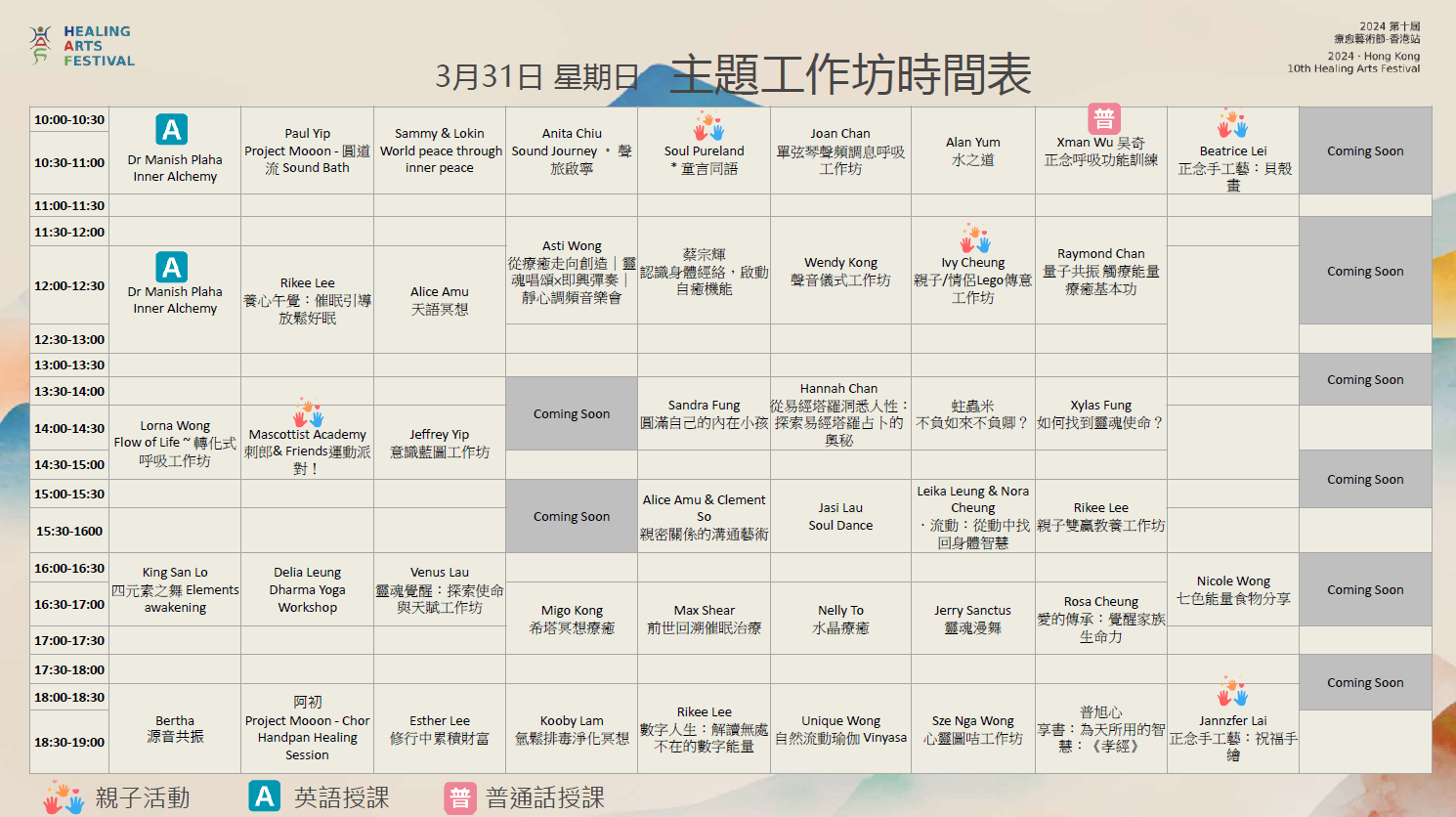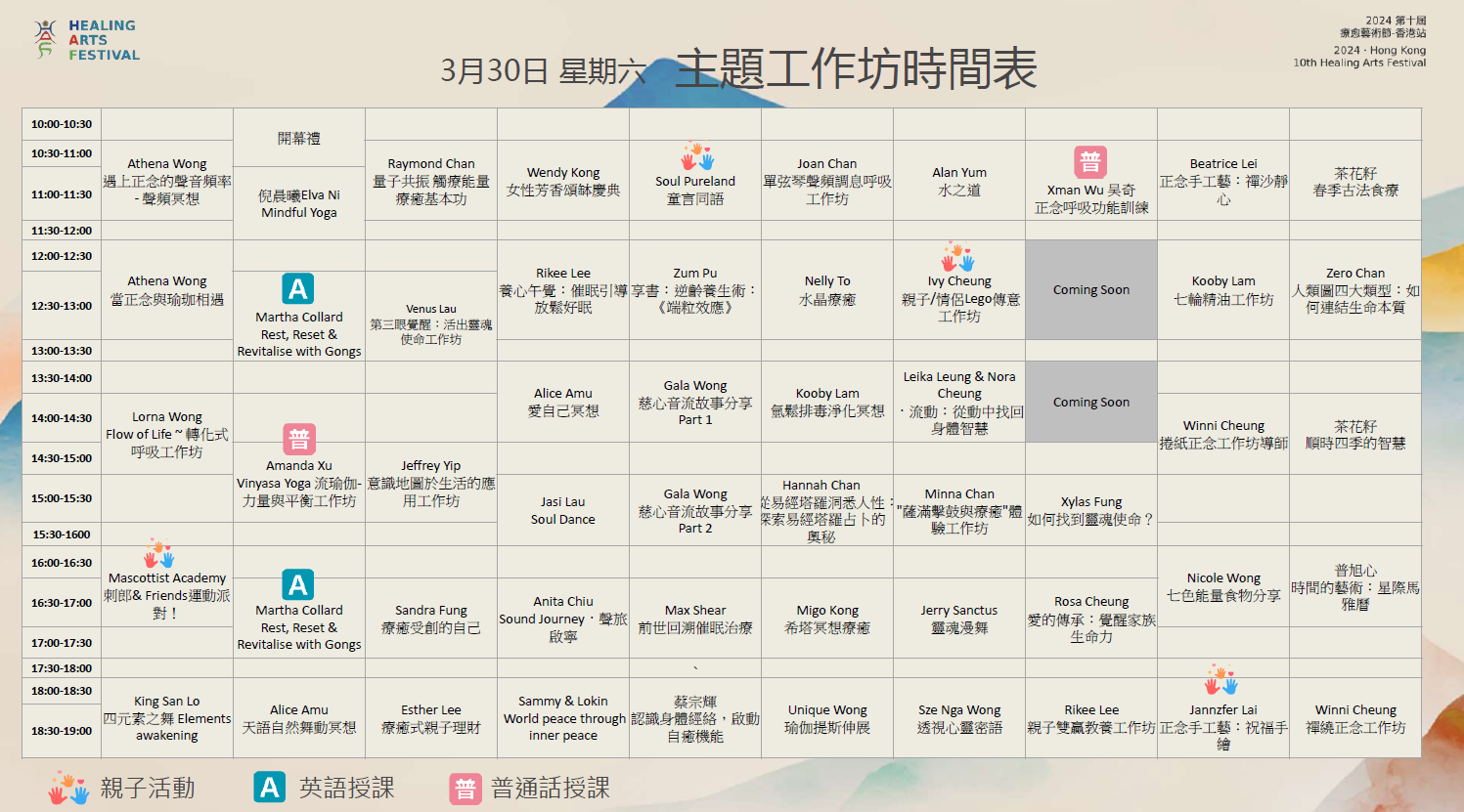 主題工作坊時間表
