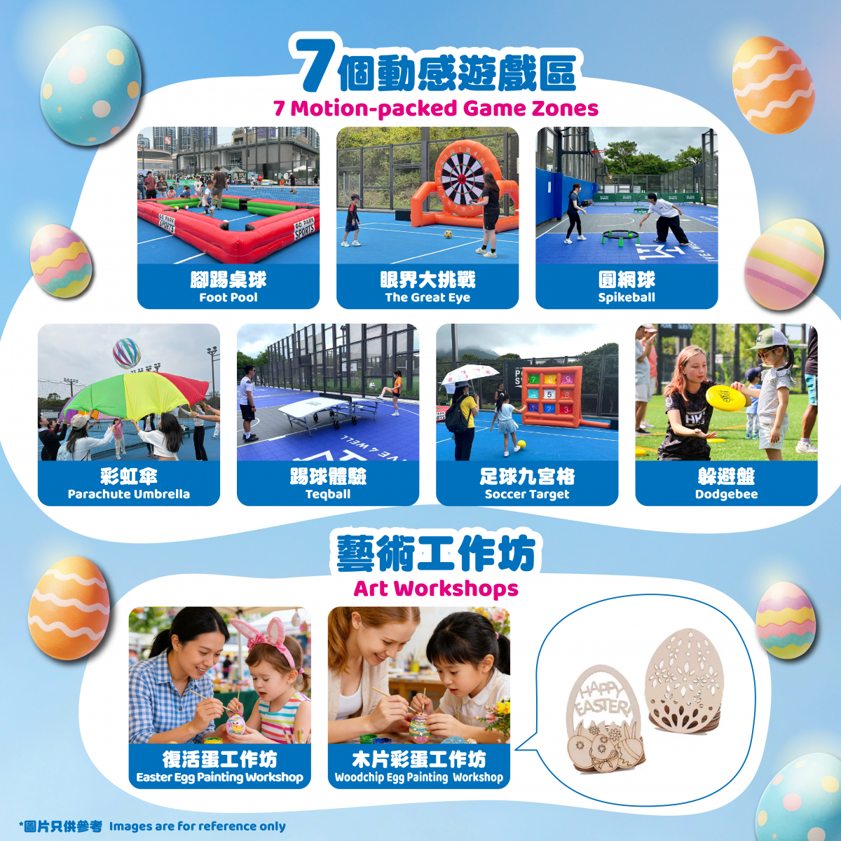 黃金海岸將於於4月3至6日舉辦「黃金海岸尋蛋樂」,孩子們可於超過5萬平方呎翠綠黃金草坪上盡情玩樂,包括有小朋友至愛的尋蛋遊戲、體現STEAM核心的「遙控挖泥車掘蛋大作戰」、「大型滾蛋之旅」、「復活迷宮陣」等9大玩樂區,開心玩盡復活節。
