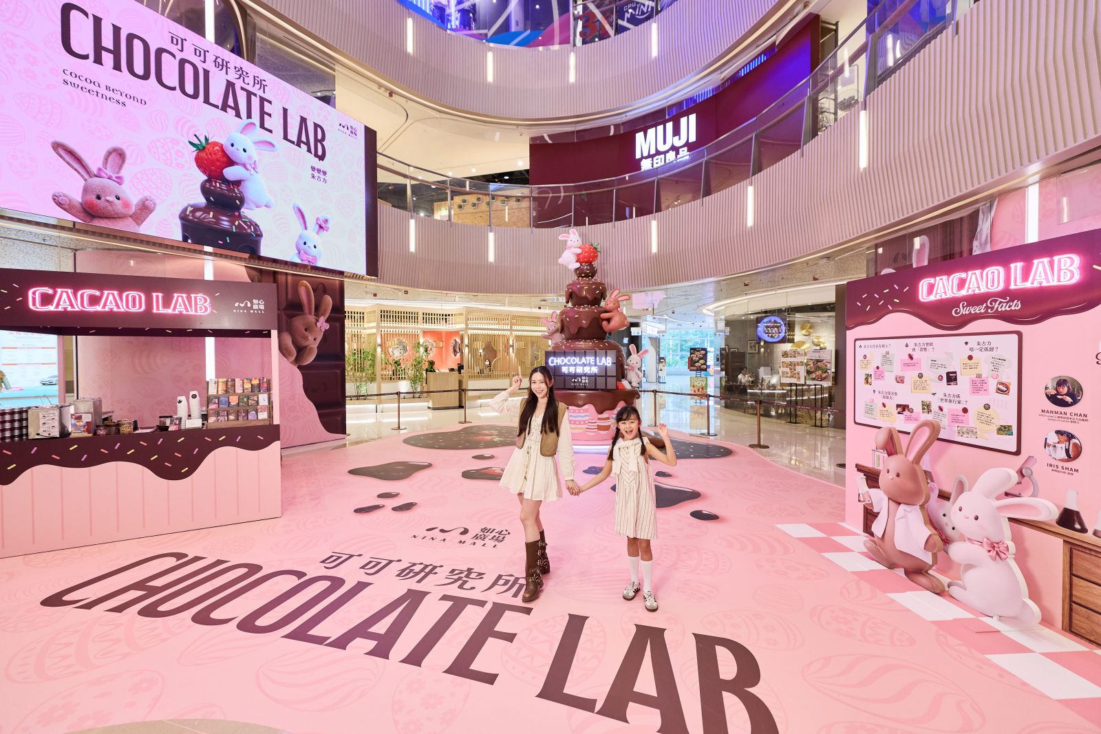 今個復活節,華懋8大商場,包括旗艦商場如心廣場、好運中心、翩滙坊、希爾頓中心、順福糧倉、上水名都商場、粉嶺名都商場、巴黎倫敦紐約戲院購物中心呈獻繽紛歡樂盛事「可可研究所 Chocolate Lab」,讓大家沉浸式探索朱古力奧秘,經歷一場集嚐味體驗、拍照打卡、尋寶互動的甜蜜旅程。其中如心廣場將中庭設置近5米高巨大化朱古力噴泉主題裝置,與一眾萌兔跳進朱古力噴泉,讓大小朋友都能一邊品嚐朱古力一邊與萌兔打卡,捕捉每個甜蜜時刻。