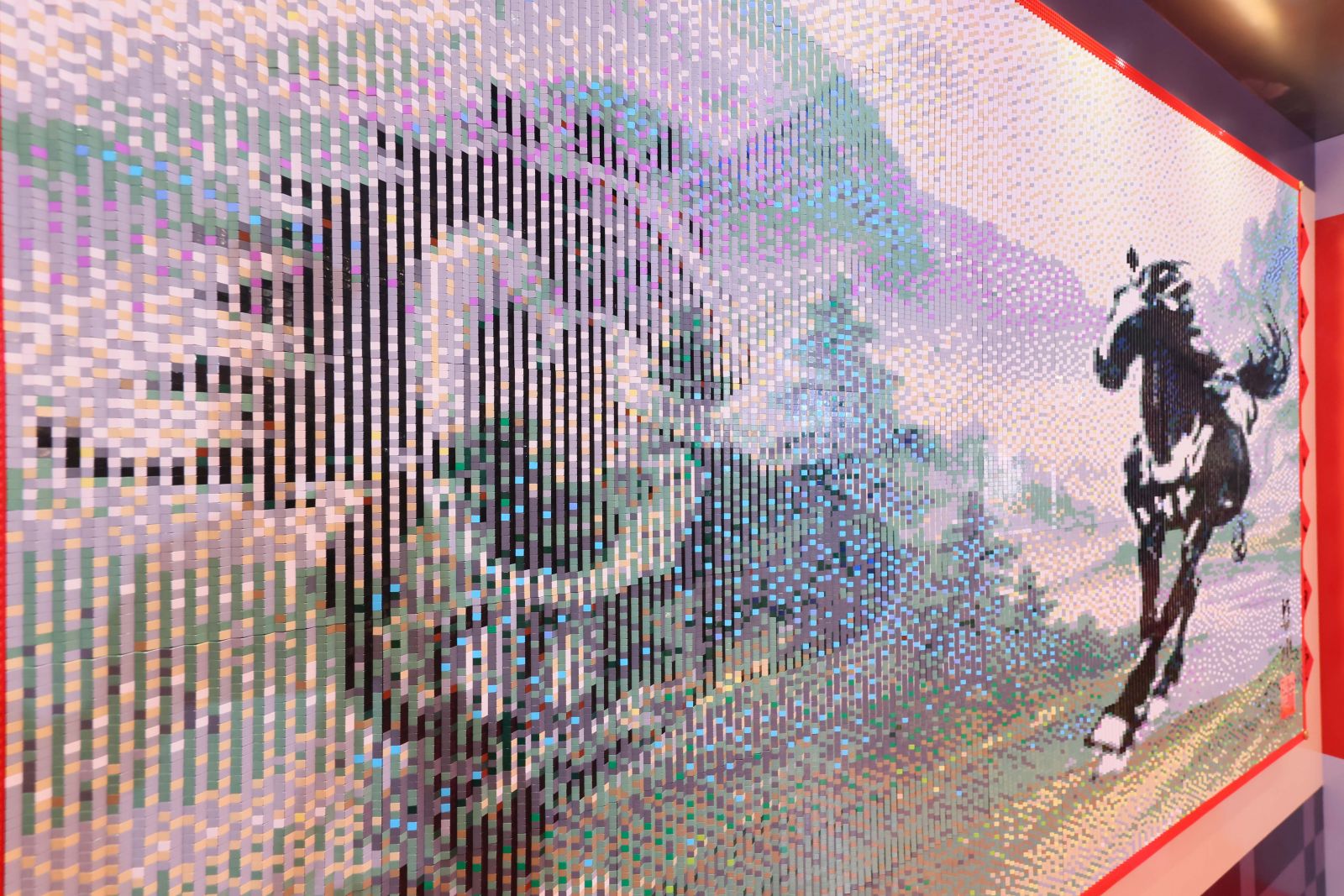 由「徐悲鴻藝術委員會」官方認証,以超過 20萬粒LEGO®顆粒,透過3D幻視藝術手法巧妙排列LEGO®顆粒,呈現徐悲鴻大師筆下的《奔馬圖》的駿馬奔騰的動感與磅礴氣勢。觀眾可於左、中、右三個不同最佳視角欣賞3米 X 1.8米LEGO®駿馬圖,彷彿親歷駿馬破畫而出,體驗徐悲鴻筆下駿馬的生命力與神韻,帶來前所未有的視覺震撼。